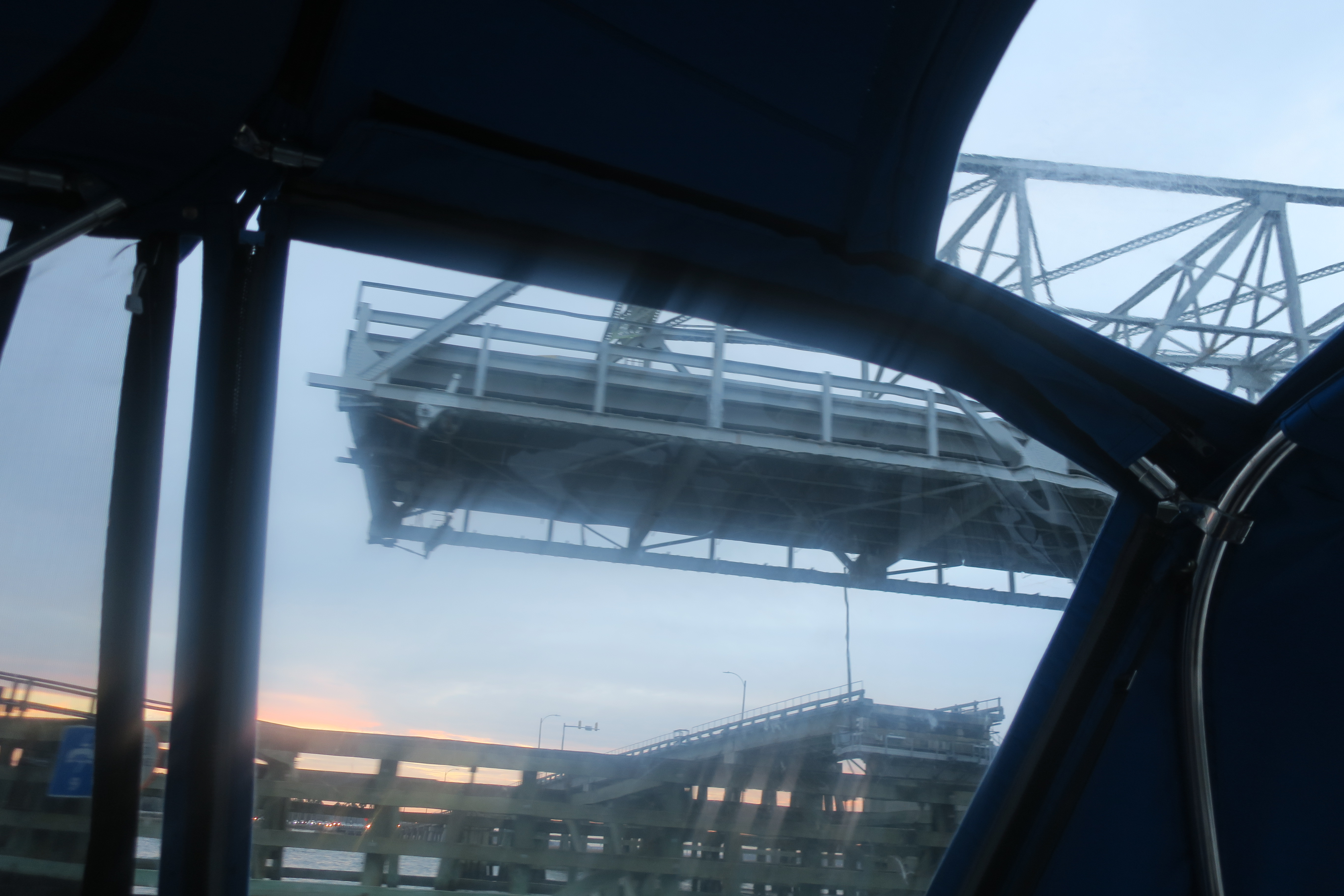 Because we are expecting high winds for the next day or two, we’re at a marina. We’re safe (although the water is slapping the hull pretty loudly right now – that will change when the winds change direction).
