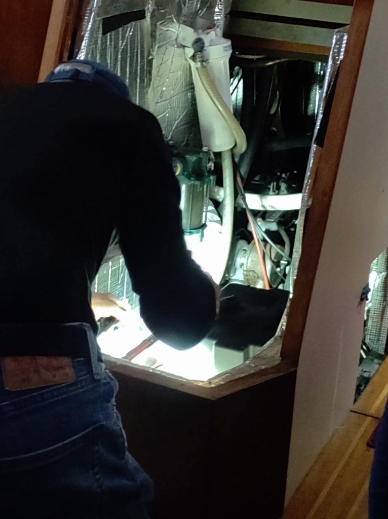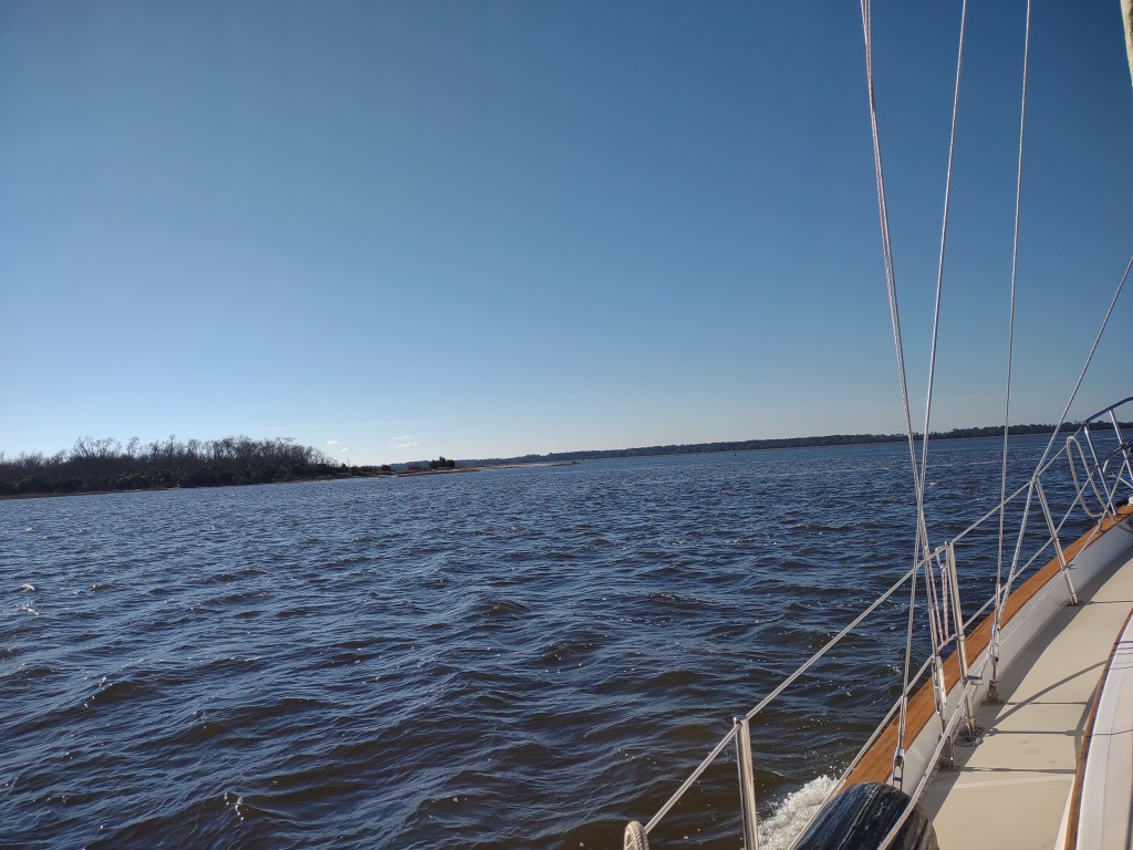 We’ve motored for 11 hours and have found anchorage in the Darien River. Our water pump stopped working so John is working to replace it. People told us that maintenance on boats is neverending and it’s proven true.