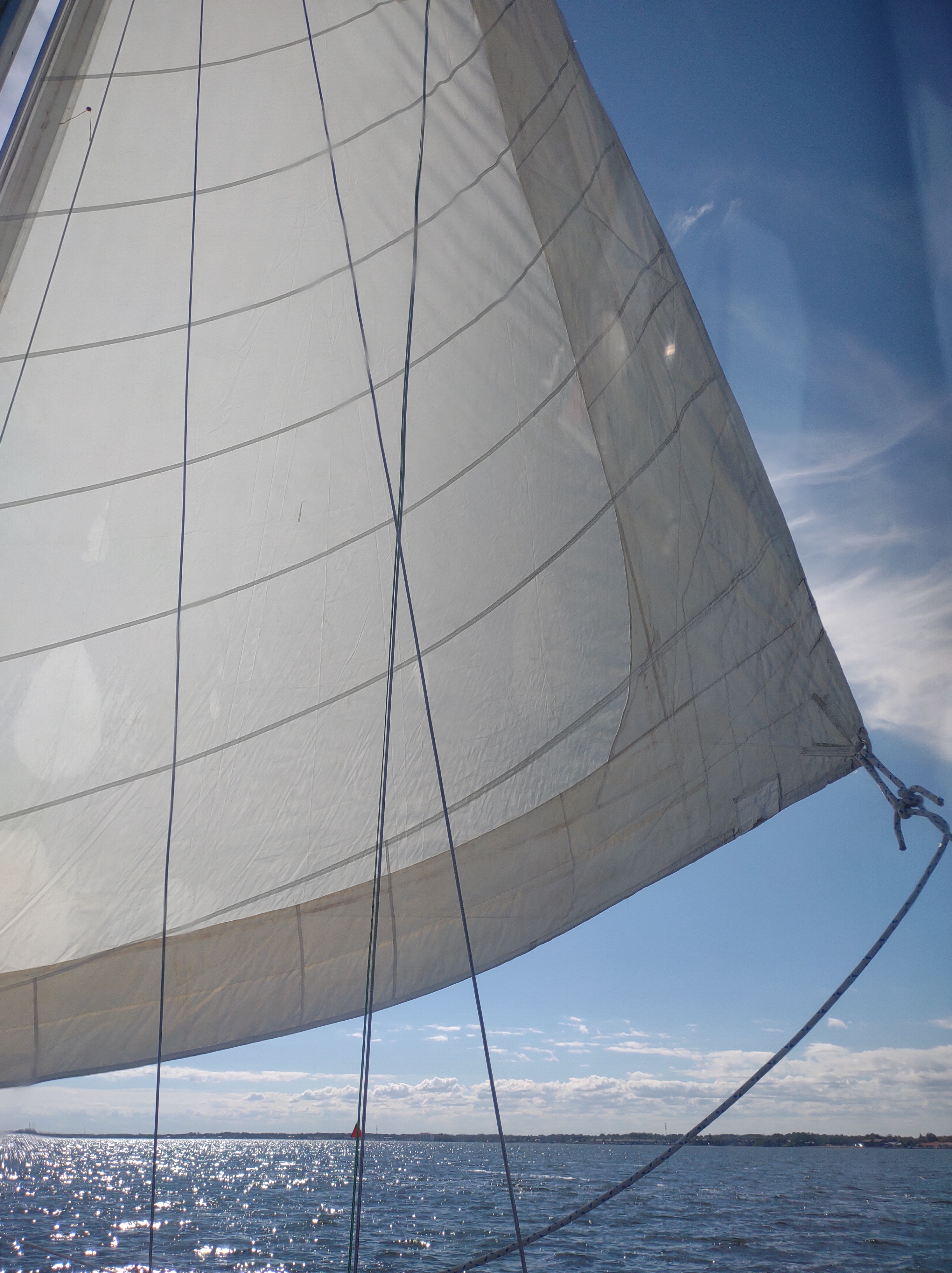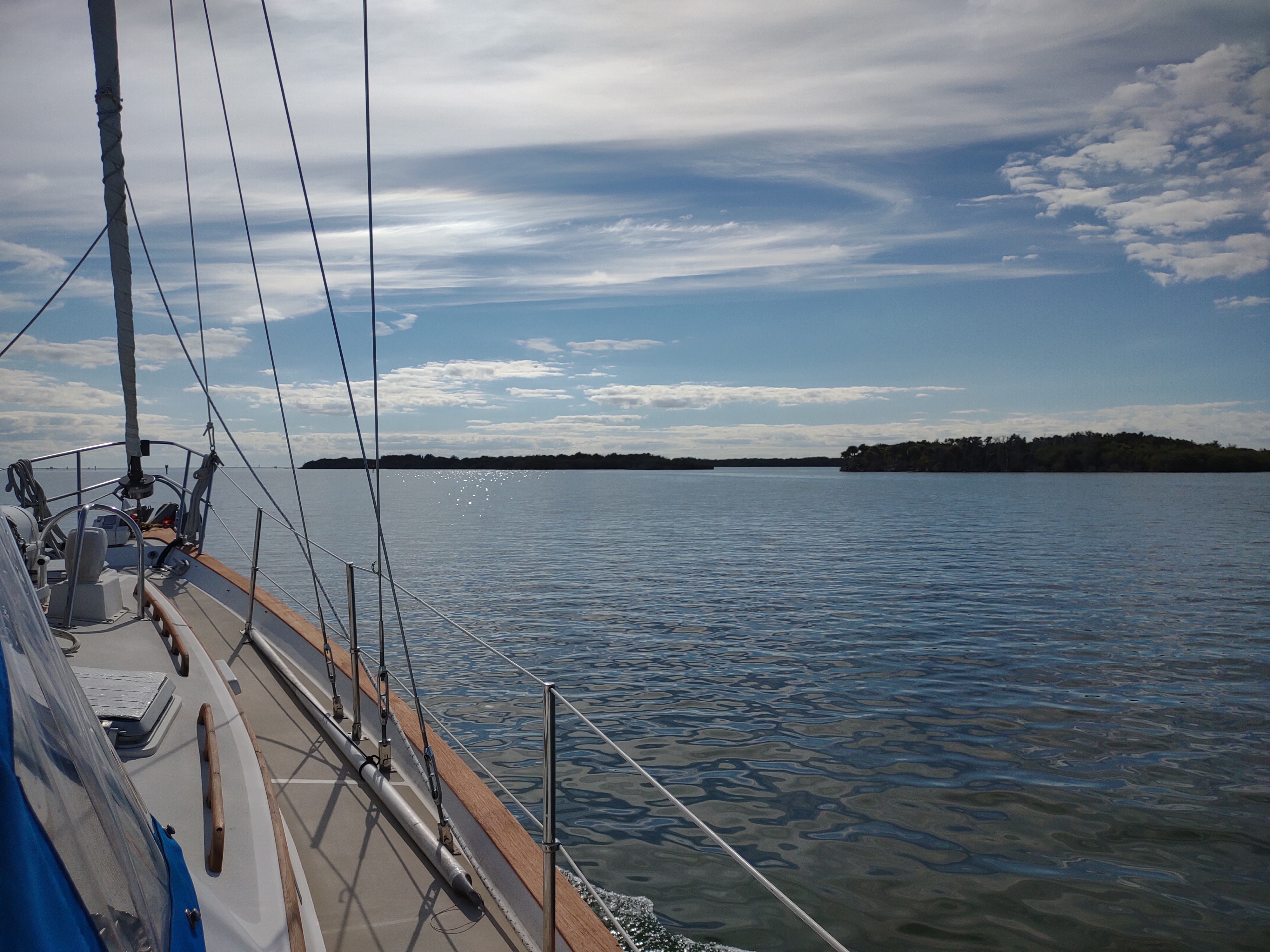 We did turn off the engine and raise our headsail briefly. There’s so much beautiful quiet when we do this but we slowed down considerably so we returned to motoring.