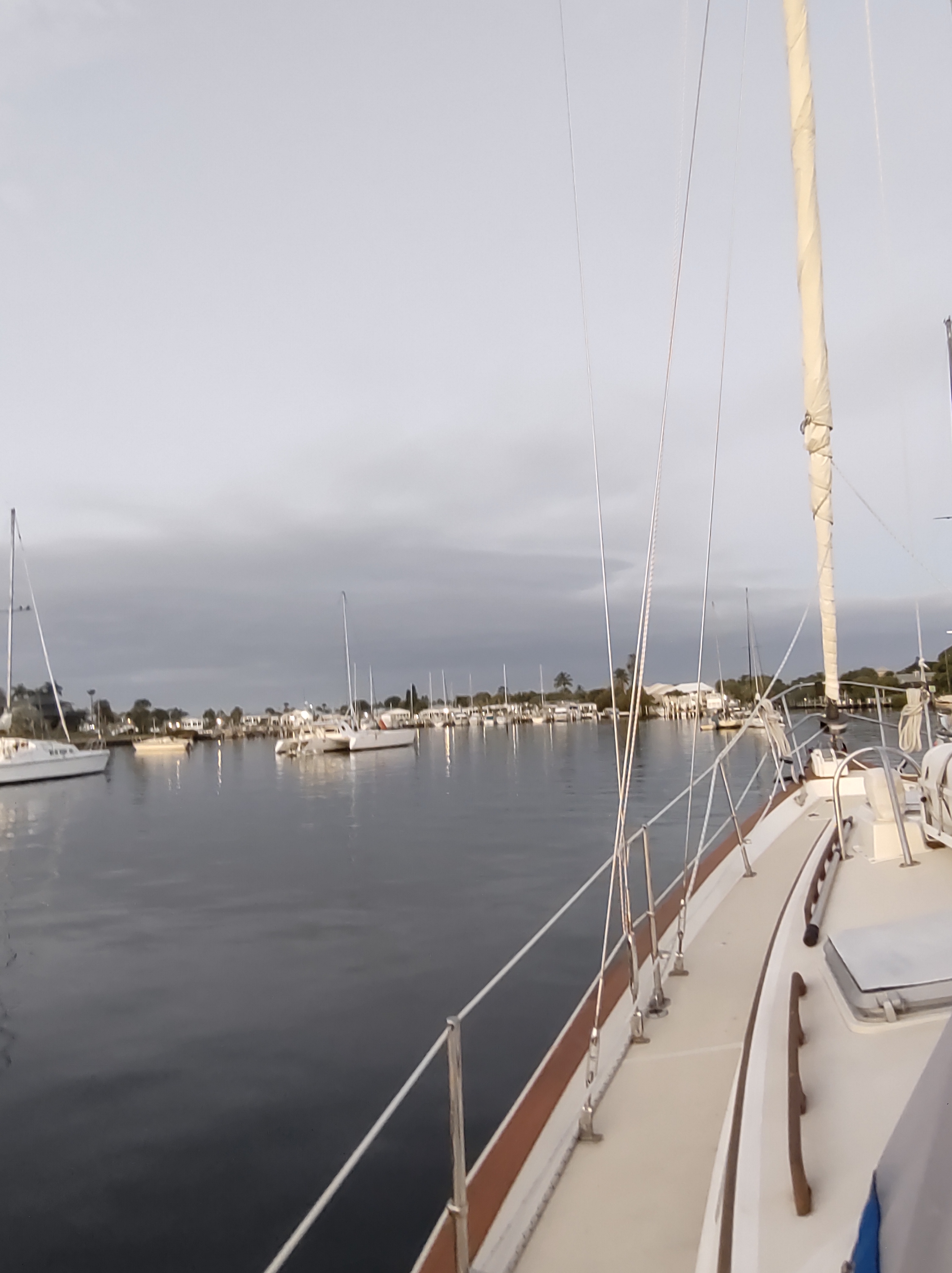 I recently read a sailing blog whose author said something along the lines of, “The most dangerous tool on a sailboat is a calendar.” That feels true – weather, maintenance, and waves all contribute to decisions about moving. Today the forecast was for a small craft advisory so we stayed in Manatee Pocket. We took some time to unfurl the main and headsail while there was no wind to (give me) practice.