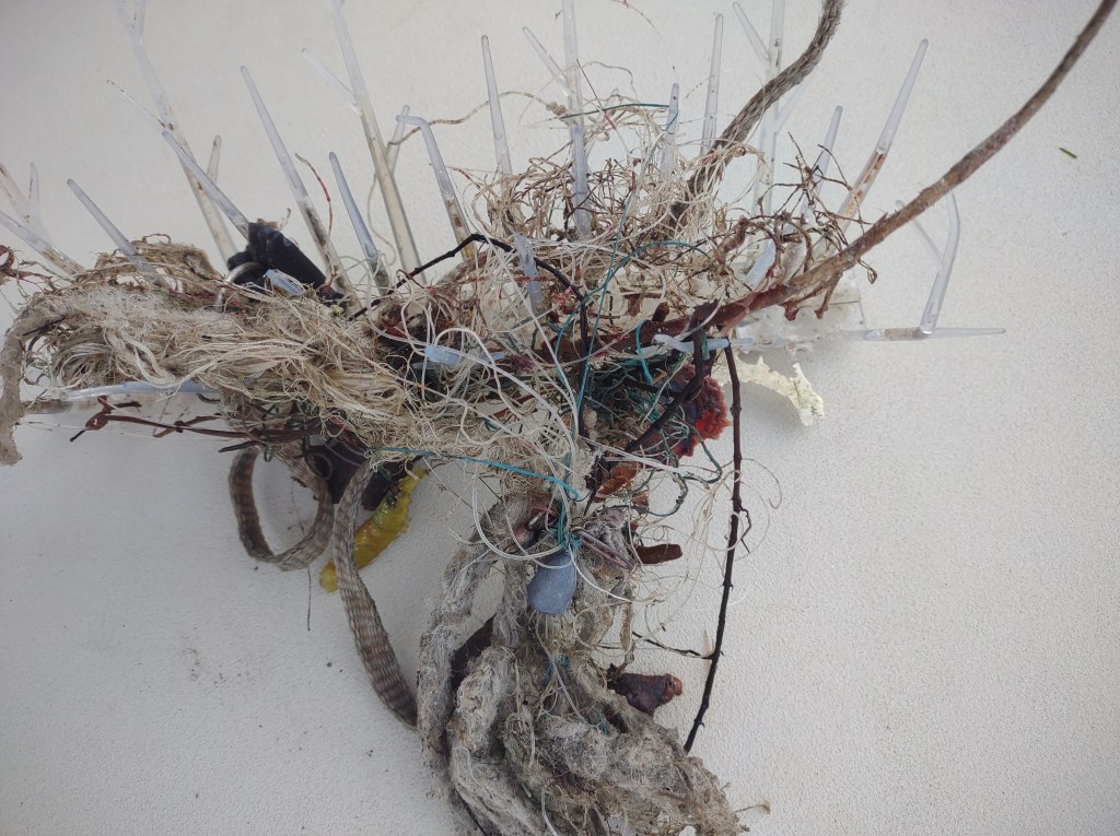 For the first time on this trip we had something wrapped around the chain. I was able to cut it off with scissors when we pulled it up – it was a combination of plastic, fishing line, some hooks, lures, and weed. Side note: I ran this through Google images to see if I could learn what the plastic thingy is. Google’s best guess is some modern art thing.