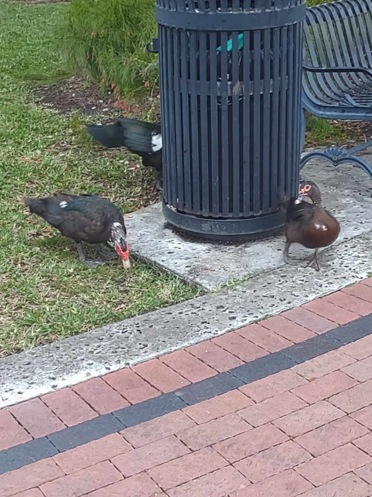 There is a wild flock of Muscovy ducks roaming near where we are tied up. Tonight we even saw some ducklings.
