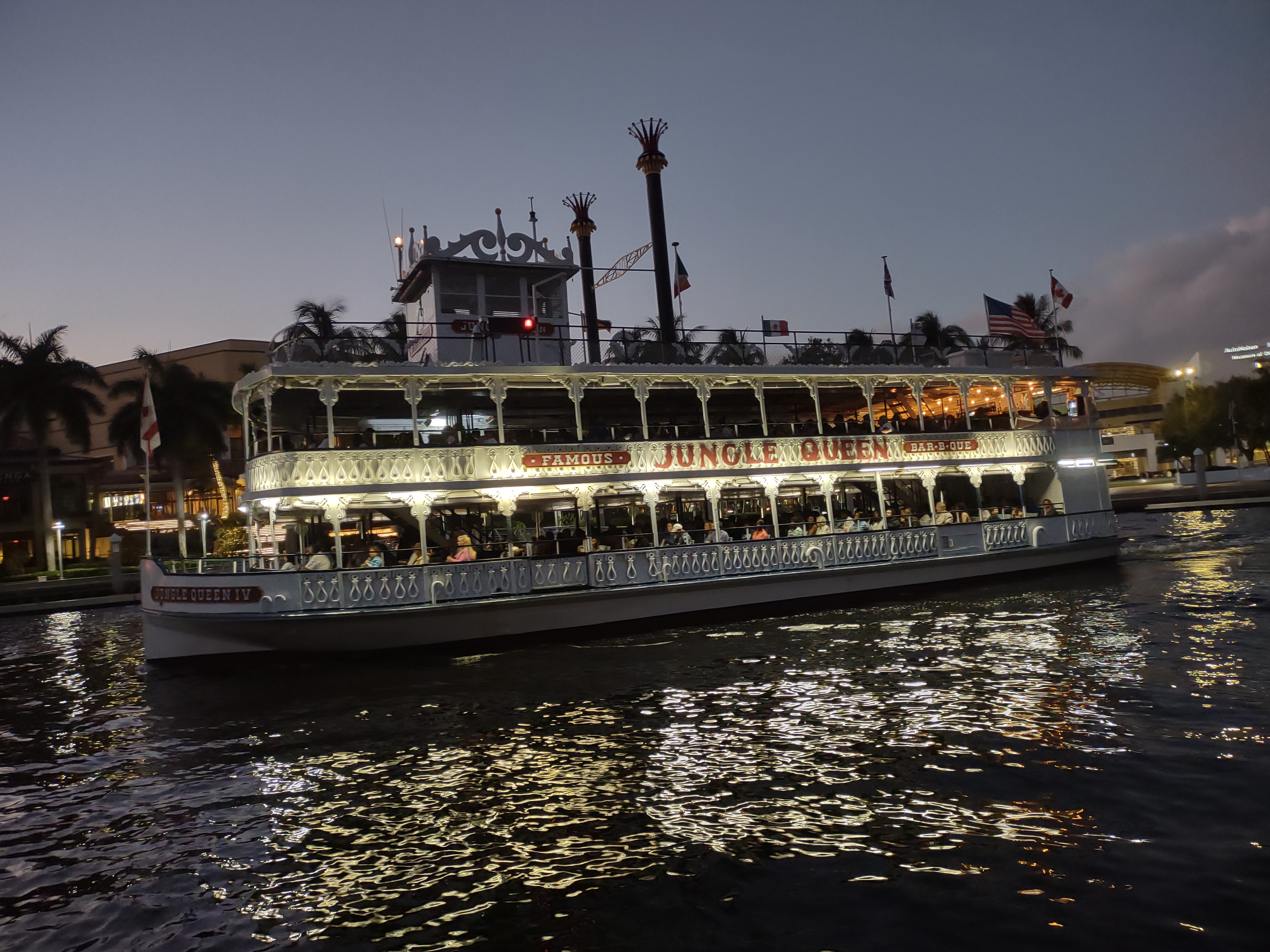 This dockage has been pretty entertaining. We haven’t seen many super yachts this weekend, but we have seen all manner of smaller motor boats, paddle boarders, kayakers, water taxis, tiki bar boats, and the multi-level faux riverboat, The Jungle Queen. The Queen does both a daily tour and a daily dinner cruise.