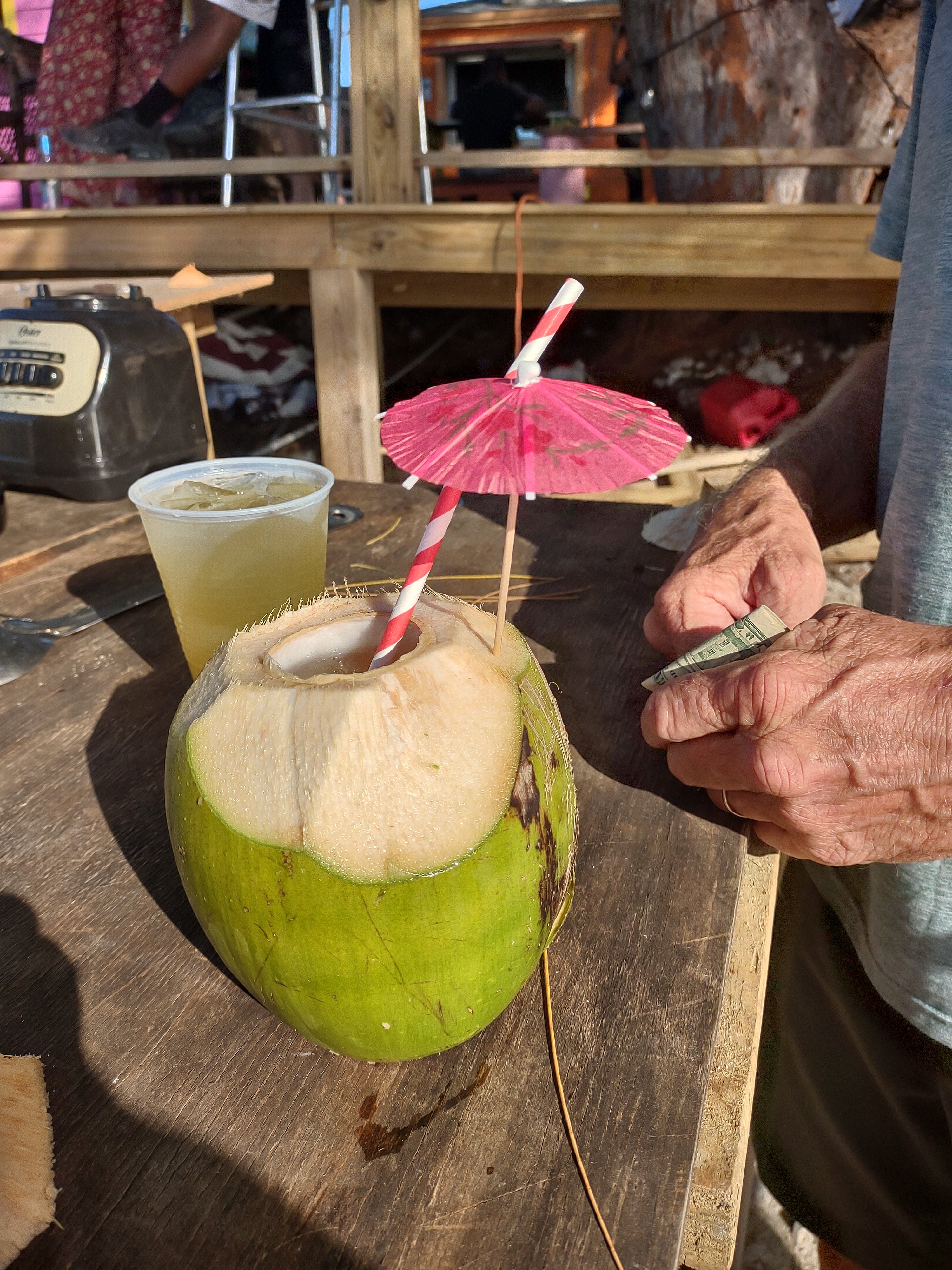 To celebrate the end of the week, our arrival in Bimini, a really collaborative and positive remote school visit, and just because we can, John and I walked over the hill to the ocean side of the island to have a coconut drink with one of our boat neighbors. Coconut Brian is right on Radio Beach.