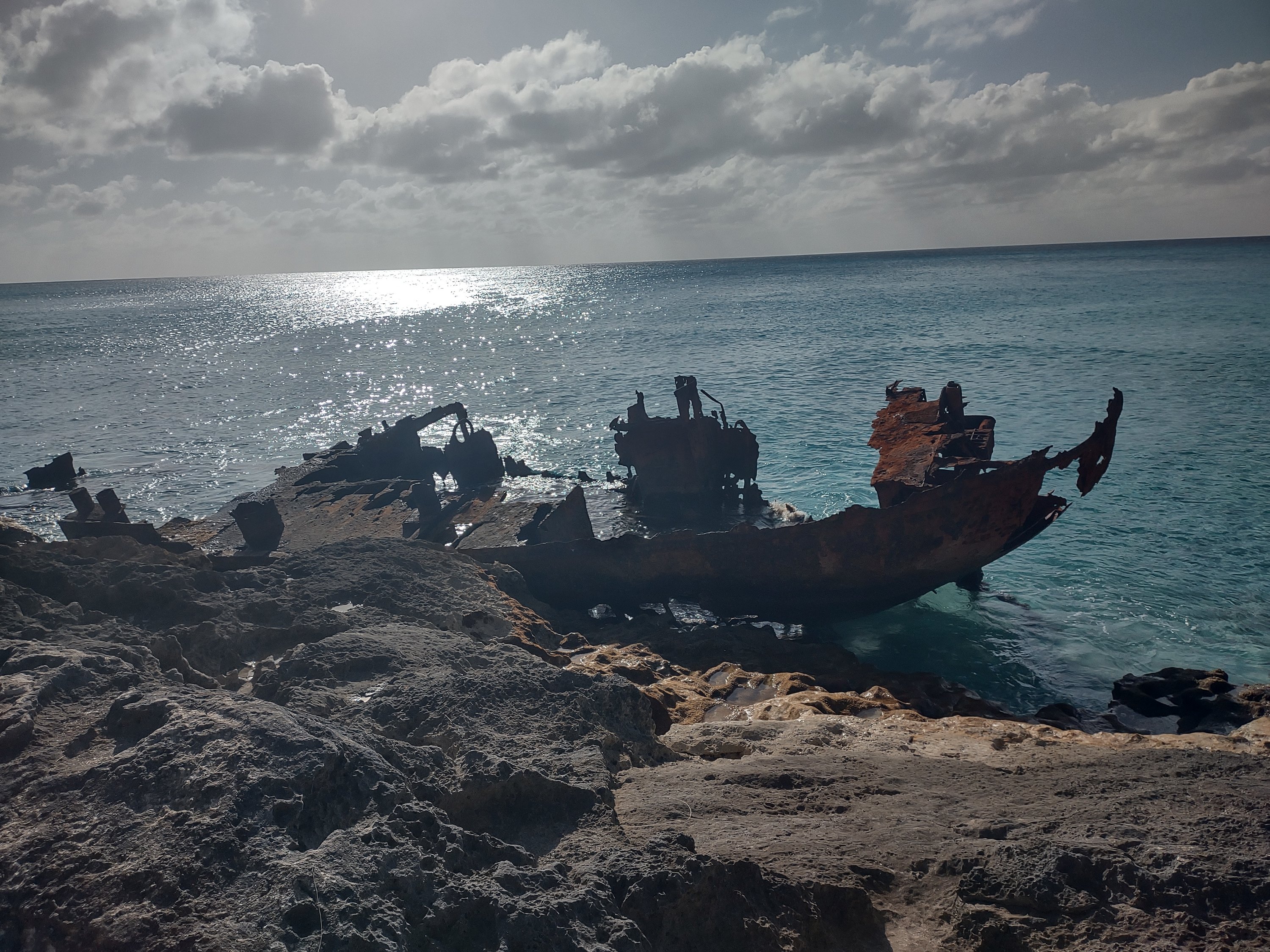 There’s some wrecked and abandoned buildings here – we think they are remnants of a casino. This end of the island seems to have a lot of damaged buildings.