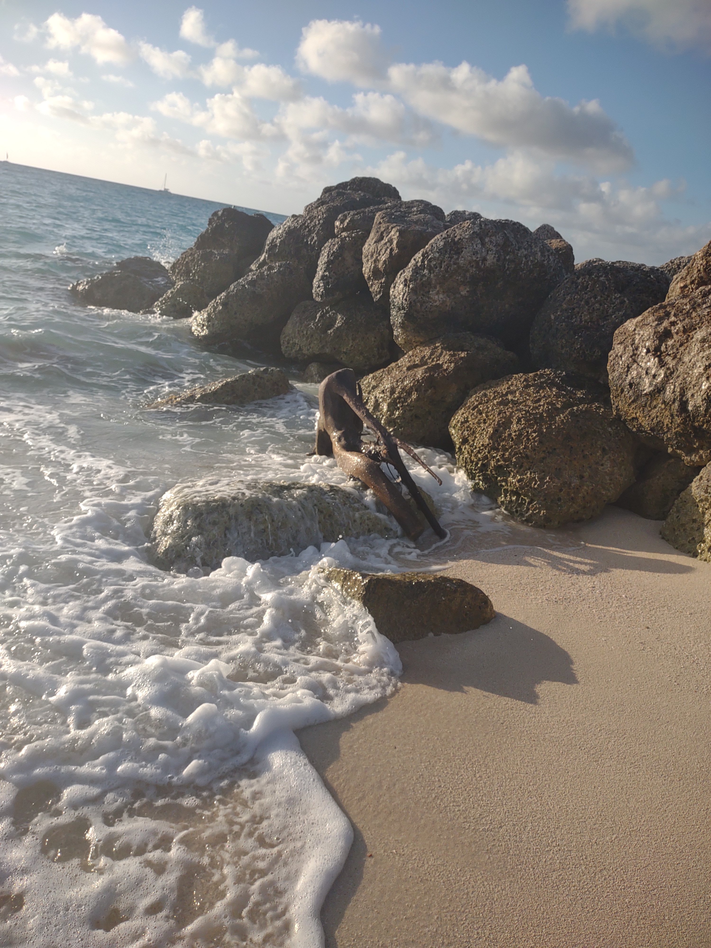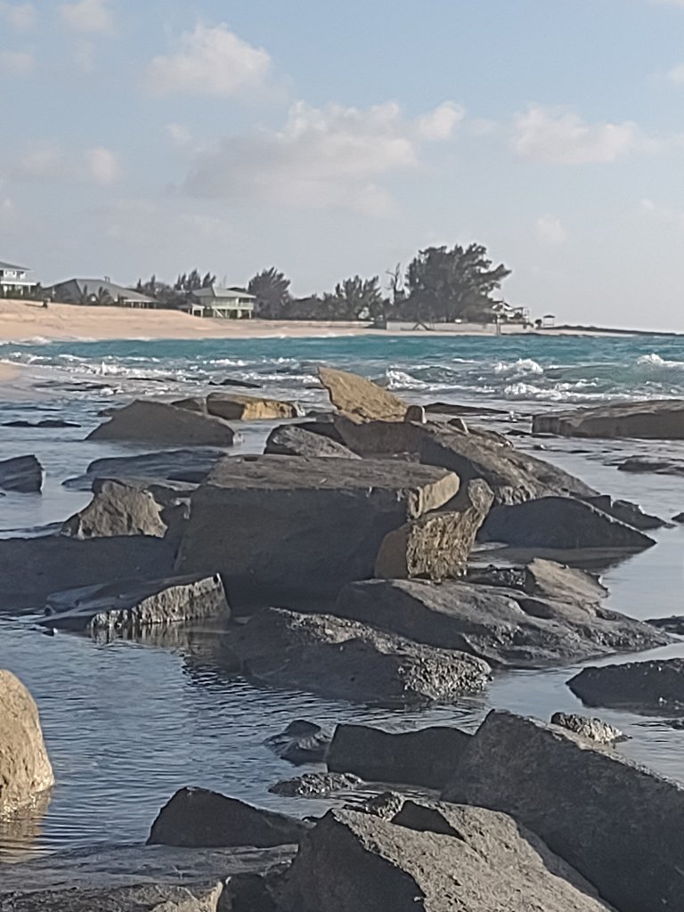 This western facing beach was getting hit by a bunch of waves this afternoon. We watched some boats head out of the channel between the the two Biminis. They were rocking more this afternoon than the boats this morning.