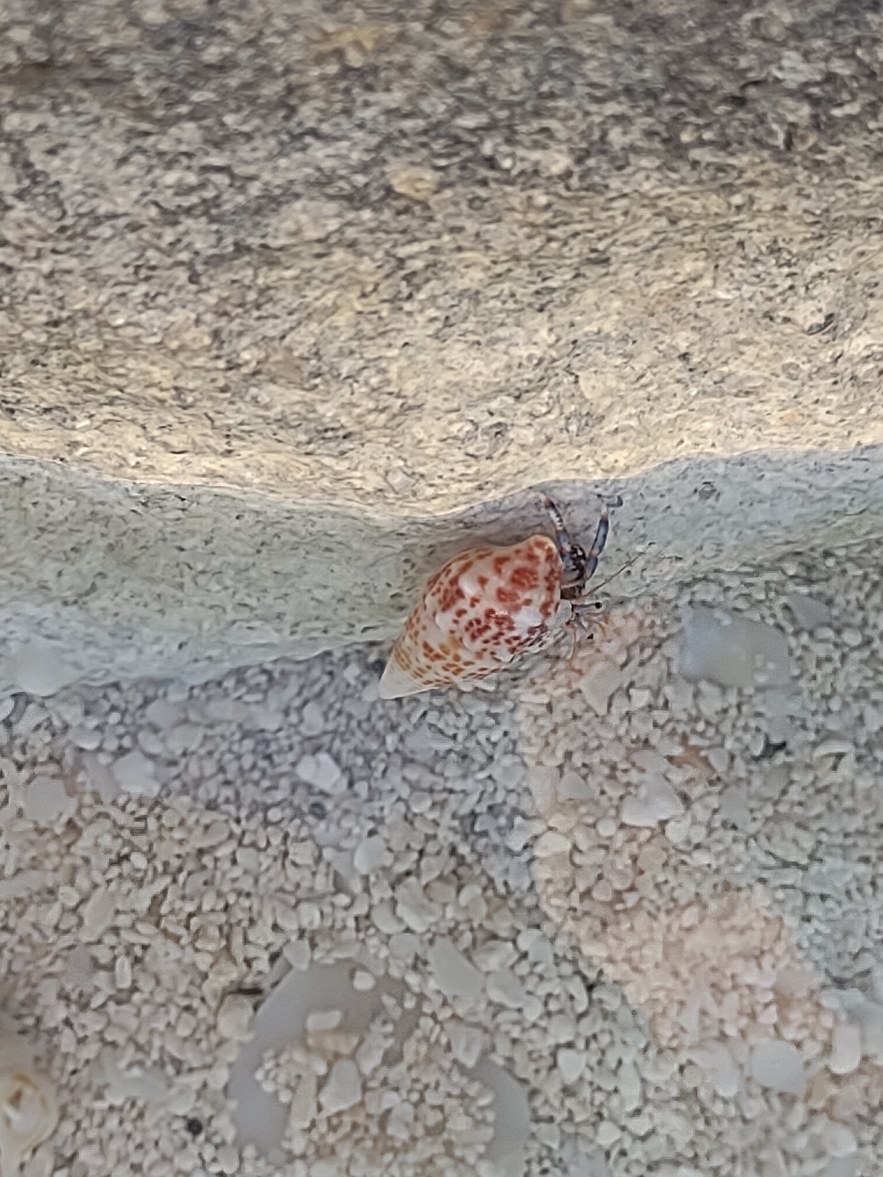 After work we walked on the beach. The sand is very coarse here with lots of shell fragments; it’s loosely packed so our feet sink into as we walk. There’s a cool ridge of limestone that runs along the edge of the water with cool tide pools. We sat for a bit just watching the teeny striped fish, snails, and hermit crabs.