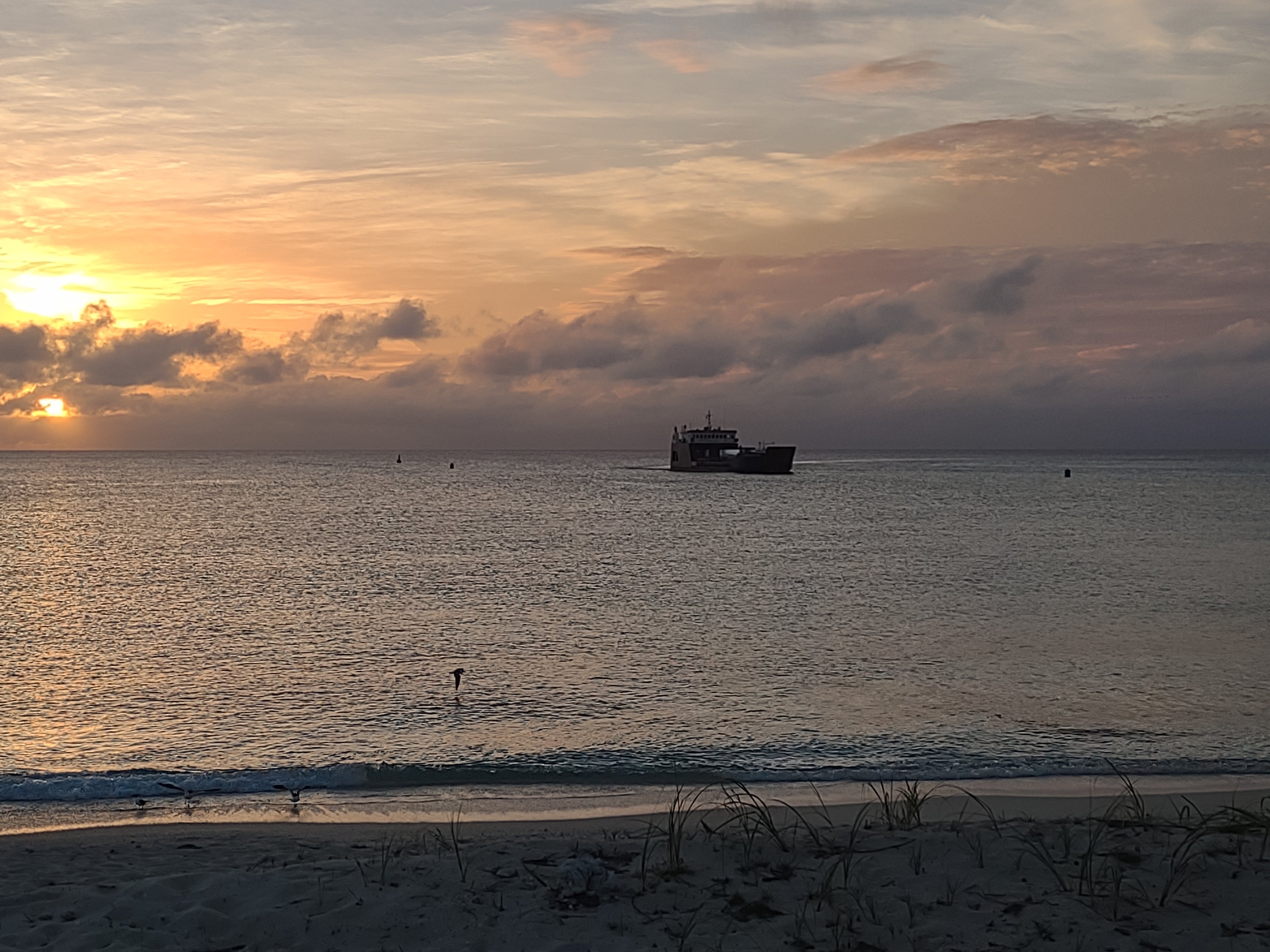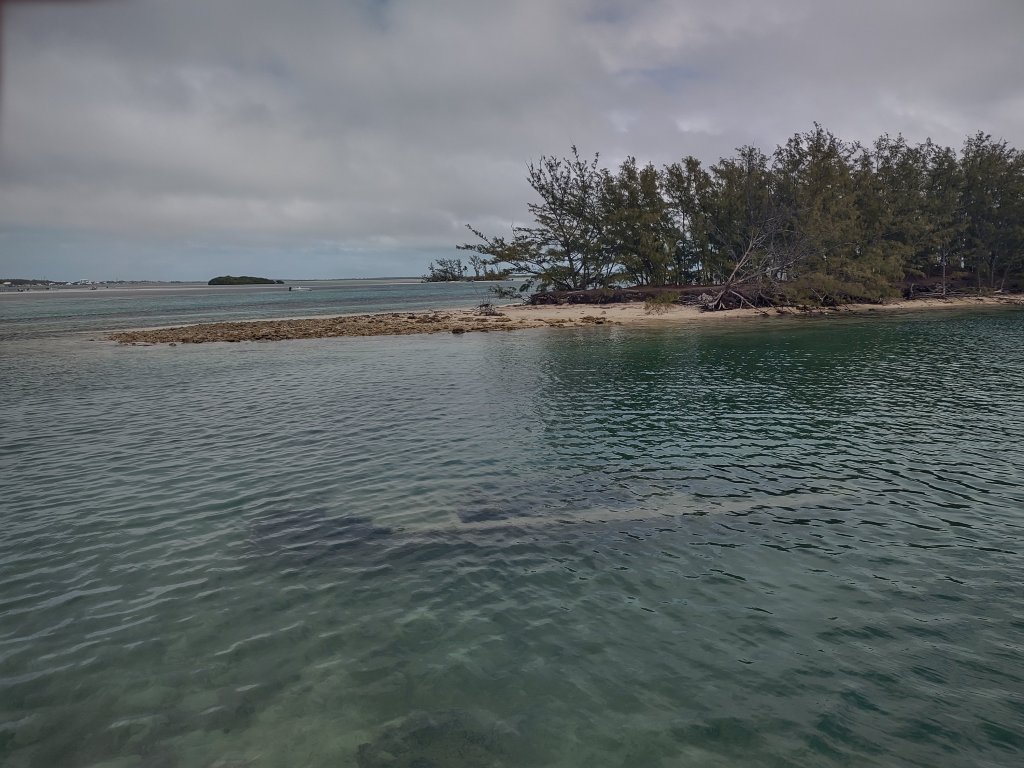 One of the most Zen things about the Bimini ferry is that there doesn’t seem to be a schedule. It just goes when people get there – sometimes we’re the only passengers and sometimes there’s a lot of folks. For the first time since we’ve been here we had to wait for about 15 minutes. That gave us some time to check out the South Bimini side. There’s an old barge-type vessel tied up to the pillars of an abandoned building there as well as a sunken boat a few feet under the surface.