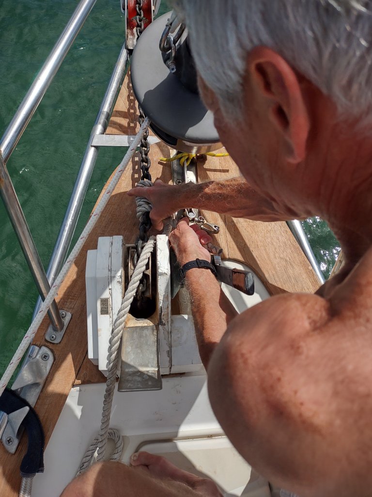The forecast calls for the winds to pick up (again). Whenever these fronts come in the winds will eventually rotate clockwise. The anchorage we were in is protected from winds from the west but wide open to winds from the east (and north and south). We made the decision to move to a more protected anchorage inside the Bay of Five Pirates. This anchorage is really close to where we were and very near a large marina. An added attraction is the best name ever!