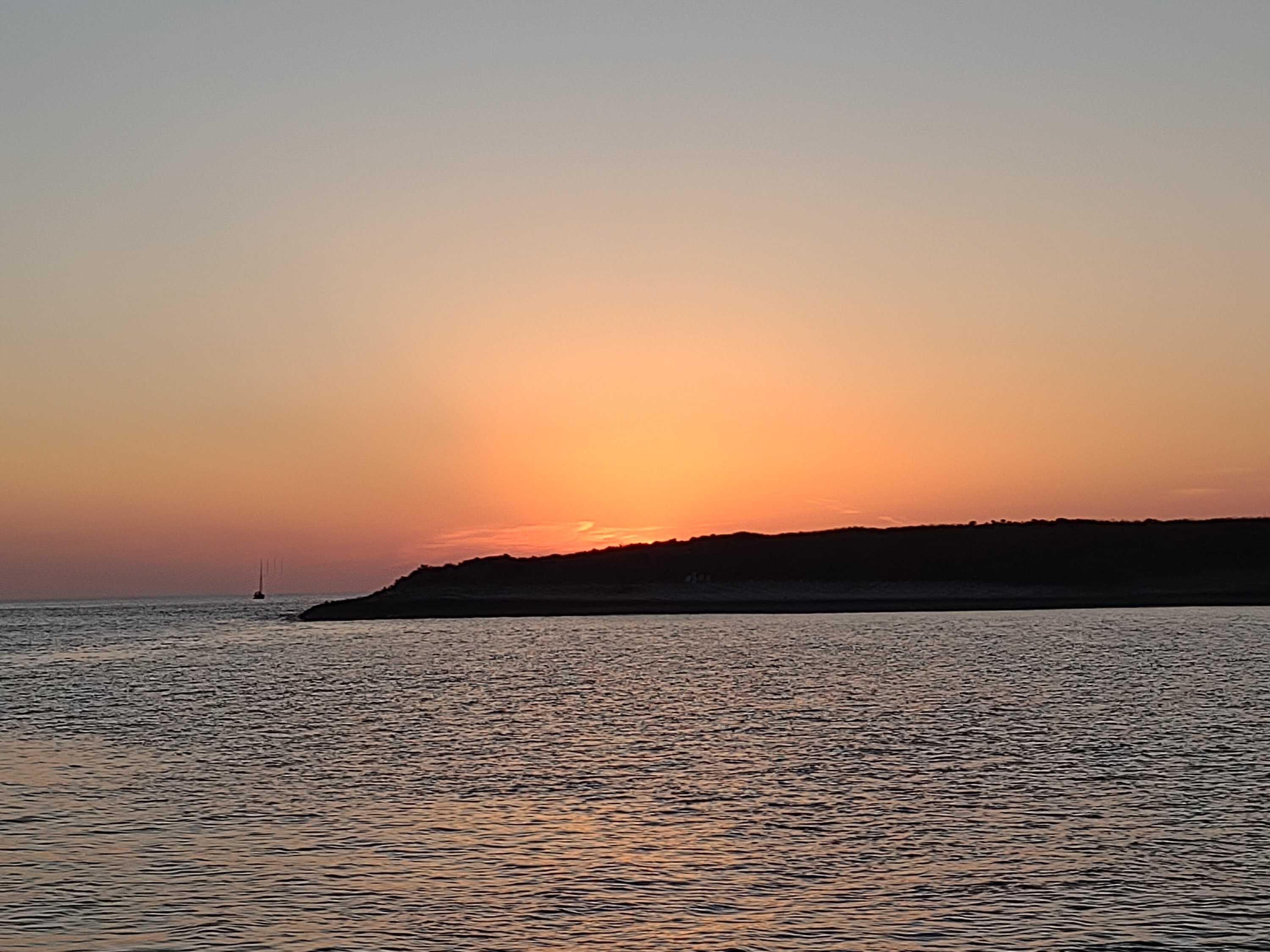 The water on the ocean side was my idea of perfect – smooth as glass. It’s not great for sailing but there’s no chance of me getting sick. We raised the sails for a while but it didn’t do much.