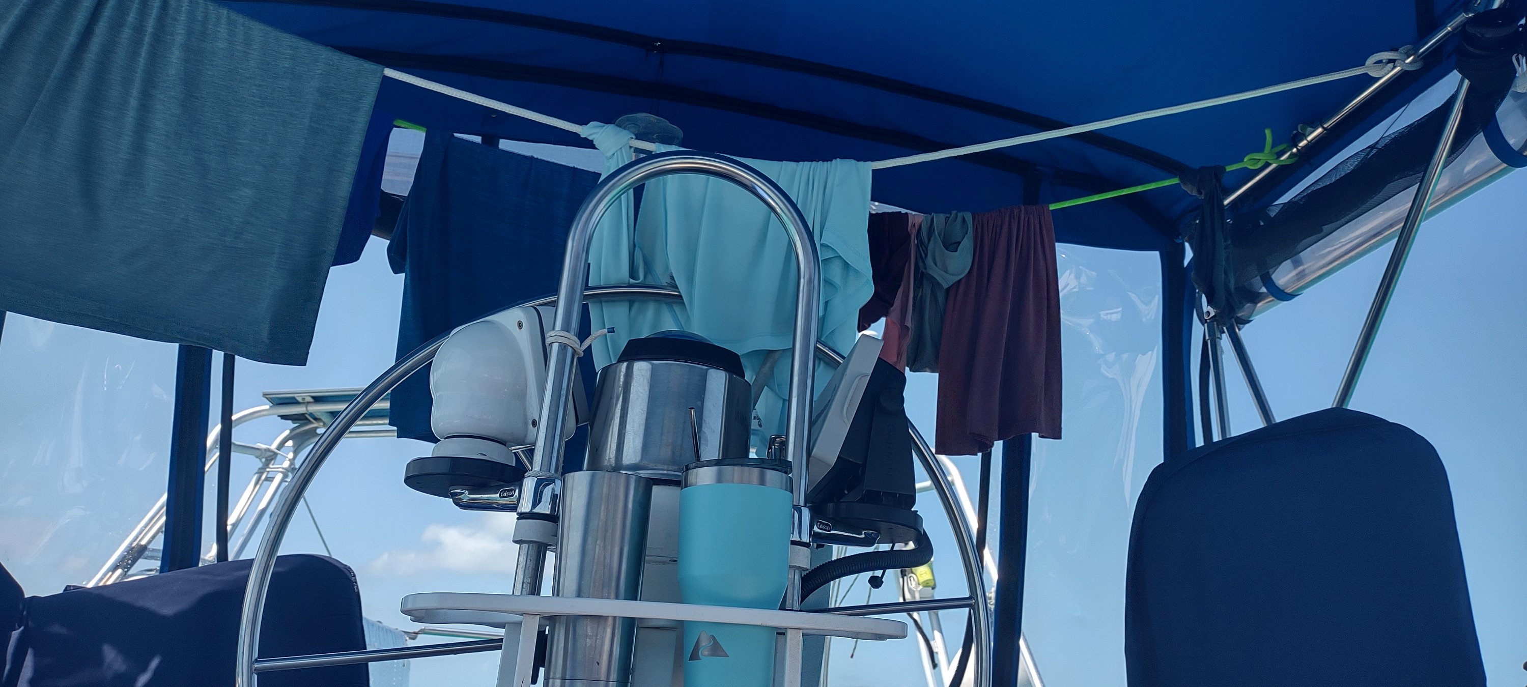 After we anchored John took the dinghy in to the marina to get ice and provisions. I did bucket laundry on Lailia. We have a lot of quick dry clothes, thankfully!
