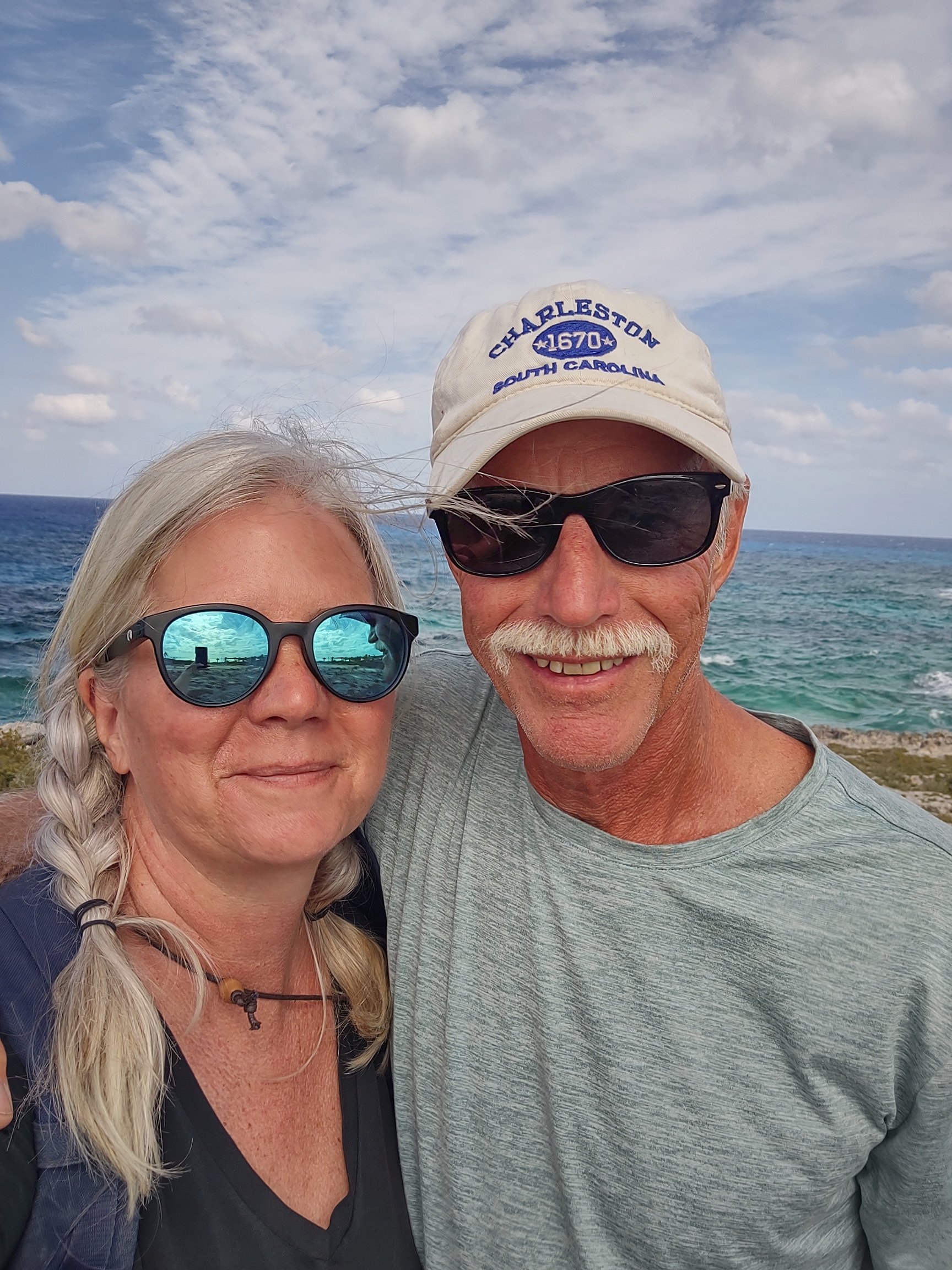 The two views from this island are very different. We’re anchored on the Exuma Bank side – the water is relatively shallow and calm there. A mile from shore on that side reaches depths of about 12 to 20 feet.