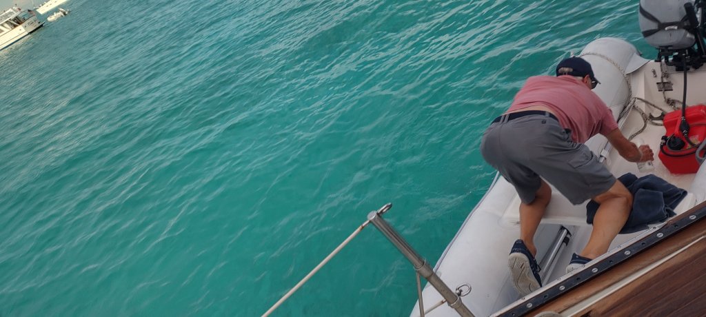 Quick trips are relative – it was down the ladder to the dinghy and a ride across the anchorage before a climb into Lailia.