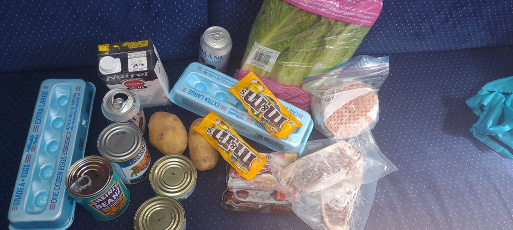 We managed to get some groceries at the store with an eye towards using our propane grill on the deck. Food prices are odd here: we got strip steaks for $7 while a can of peanuts can cost $9. I am happy to get Romaine lettuce and some hamburgers.