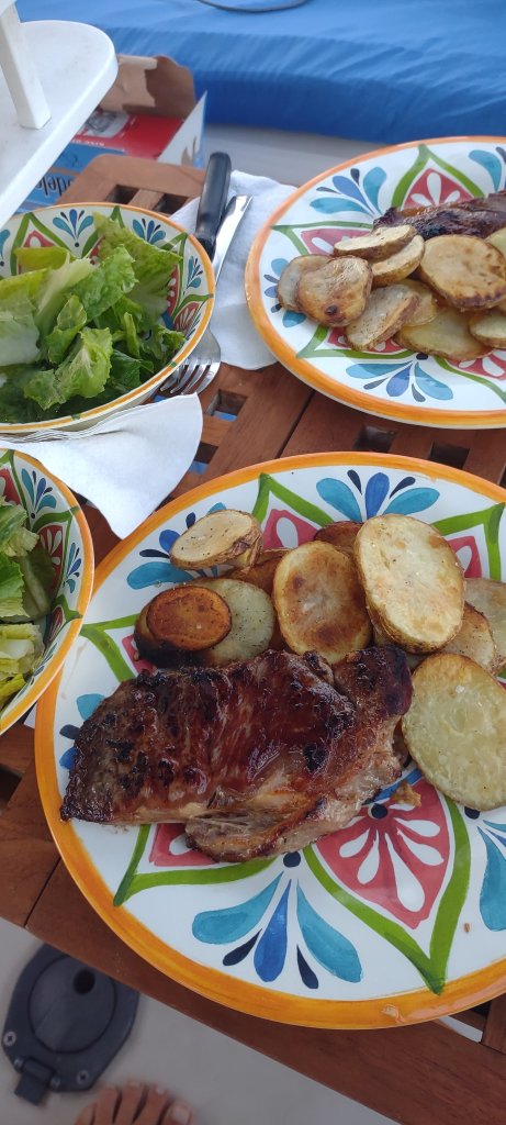 Our afternoon has been full of simple pleasures: showers before a steak dinner as we watched the sun set.