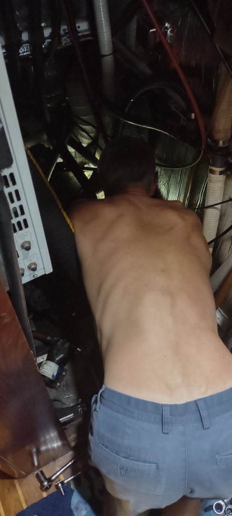 John has to work on his knees and extend into the engine room. It’s not a fast or easy process, so when it doesn’t work it’s even worse – all of that time and effort invested for a bad outcome.