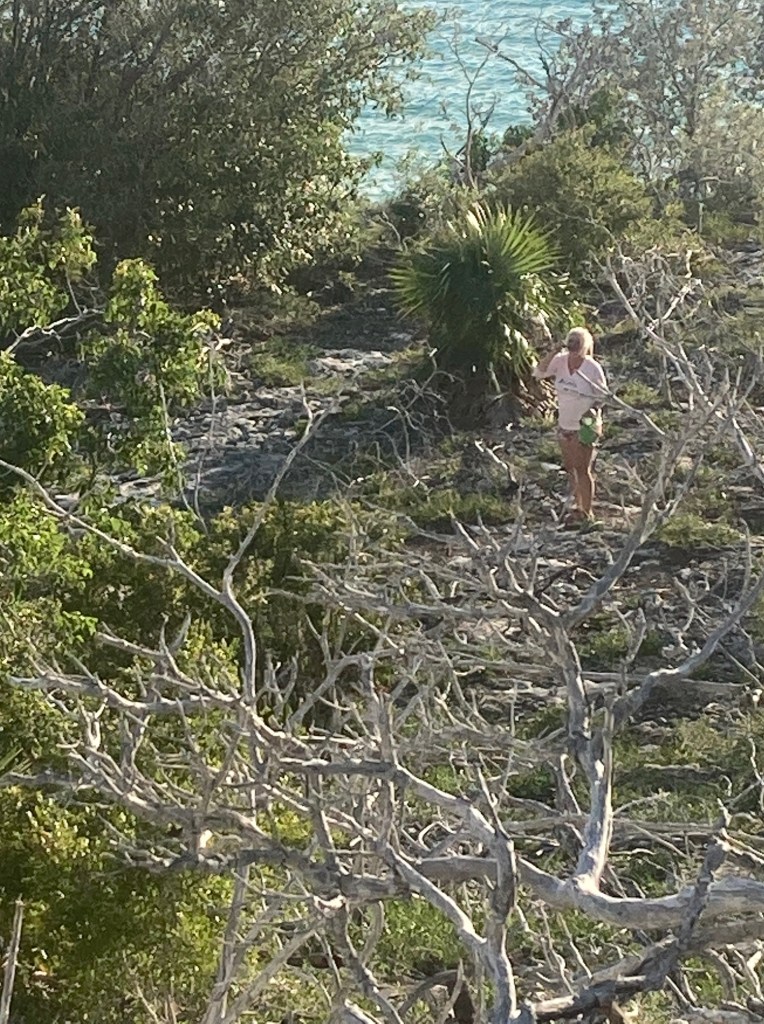 We stopped in Warderick Wells on our way south but were not able to get the dinghy and motor in the water because it was so rolly. This time the weather was great and we were able to walk on some trails through the park.