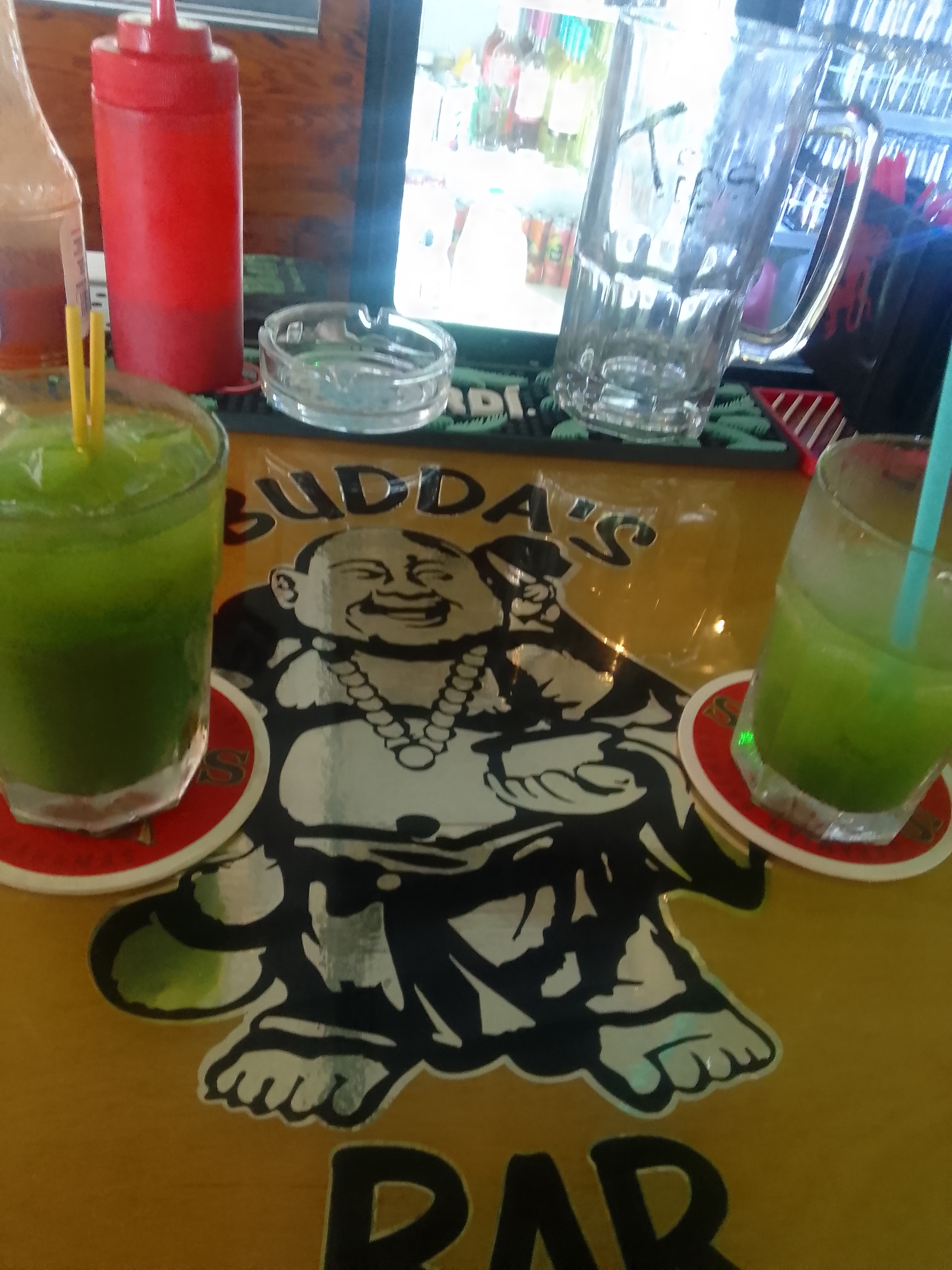 Budda’s Bar is well-known. Everyone we met who has been to Spanish Wells told us to visit. We’re really glad we did: delicious drinks including the Dizzy Budda that doesn’t taste like it has 8 different liquors in it. Since it’s green it has to be healthy, no matter how much liquor is in it.