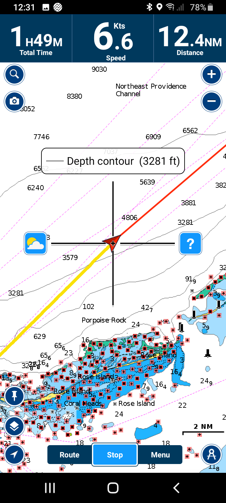 We haven’t been in really deep water since we approached Nassau from Hoffman’s Cay back at the end of March (which seems like forever ago). I had forgotten the sapphire blue of these depths.