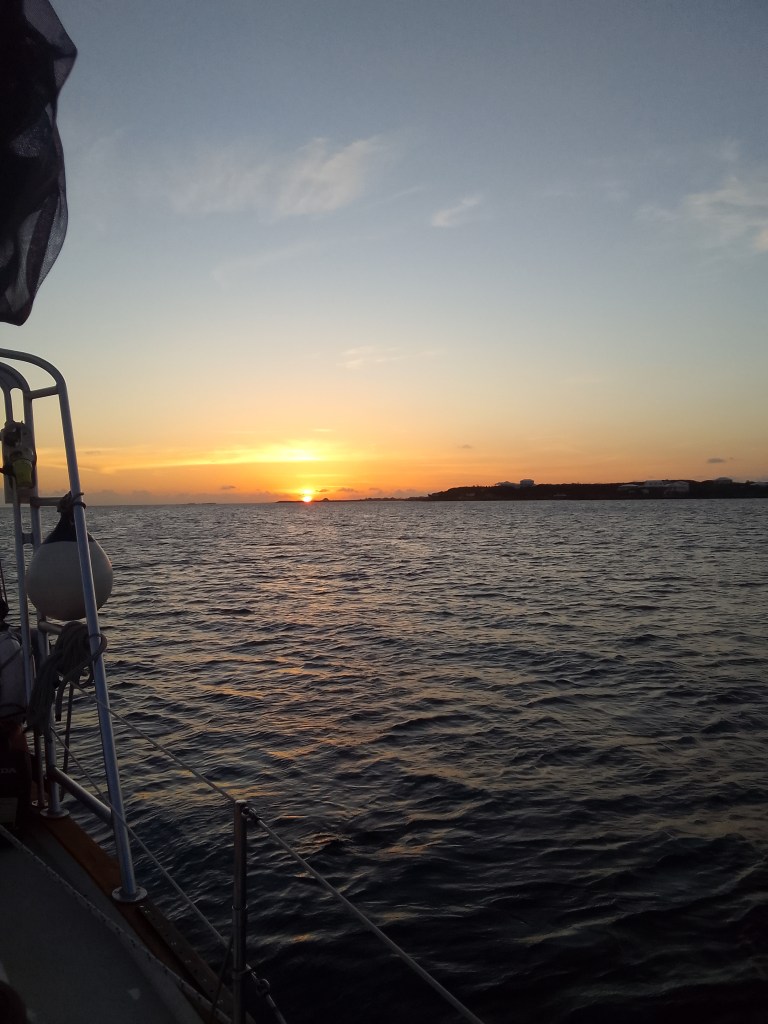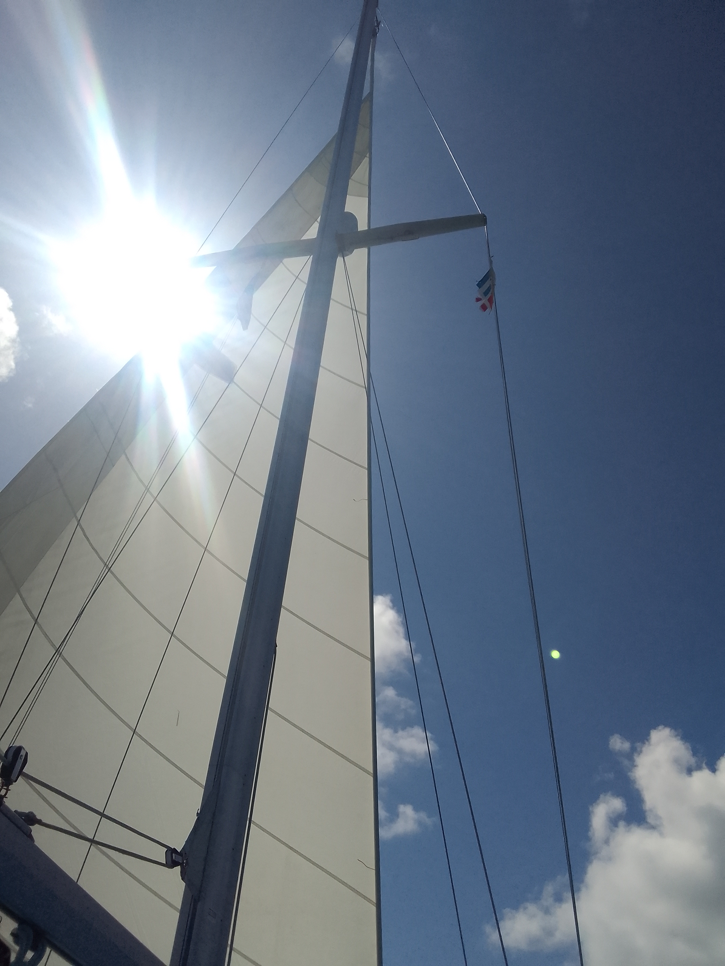 After motoring out of the harbor, we raised the headsail and turned off the motor. We were averaging about 4 knots in the light wind but it’s really peaceful without the engine sound. The mainsail didn’t want to unfurl all the way but we had it out for a while, too.