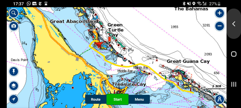 We were the last boat out of the anchorage which meant that we benefited from information that the other boats were transmitting. Last night we planned to spend some time at anchor in No Name Cay but the first boat in our flotilla found the anchorage to be too rolly. We all changed course to Black Sound in Green Turtle Cay.