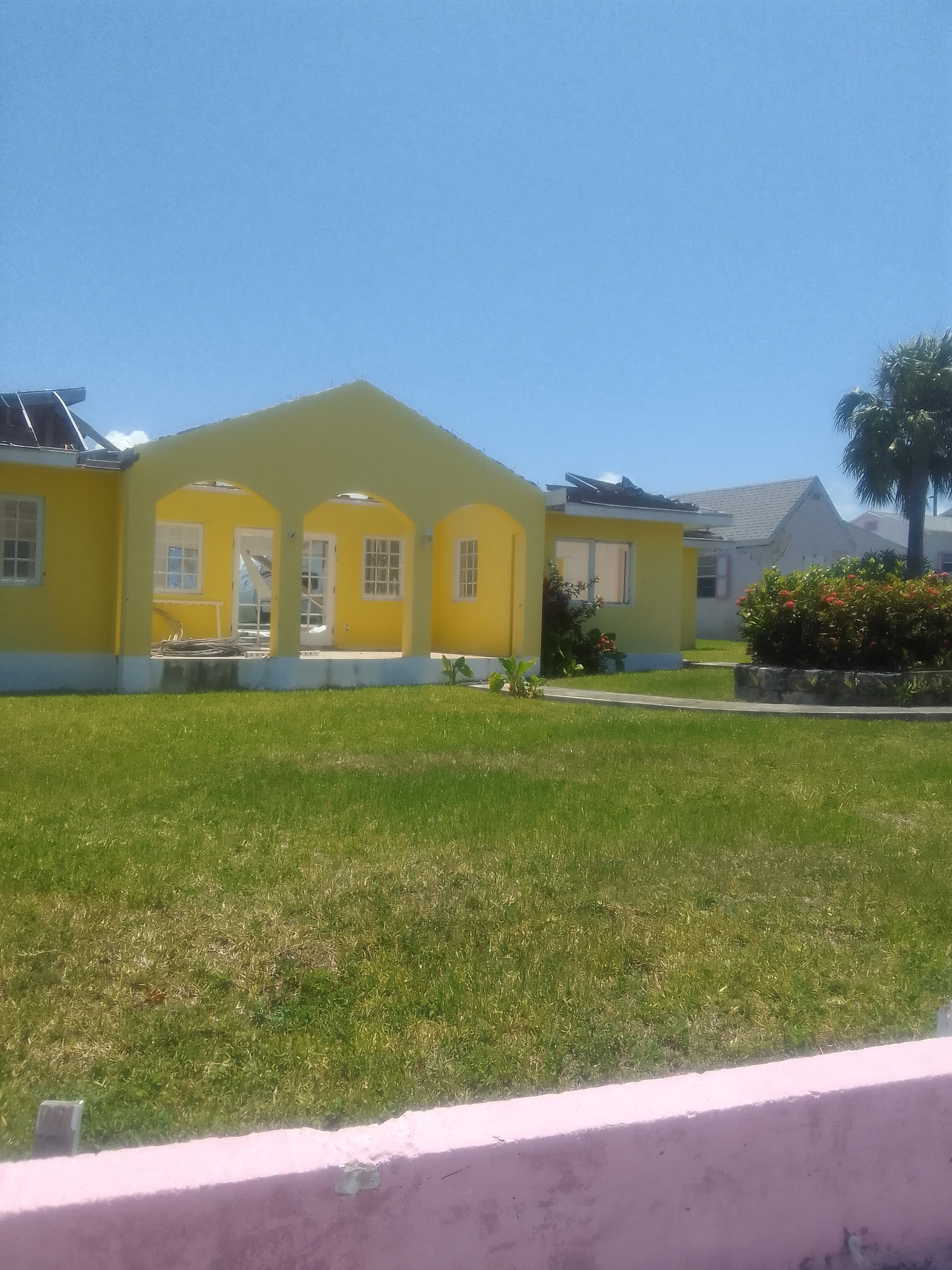 New Plymouth, like most of the Abacos and Grand Bahama, suffered a great deal of damage from Hurricane Dorian in September of 2019 and the husks of buildings in varying levels of damage are all over.