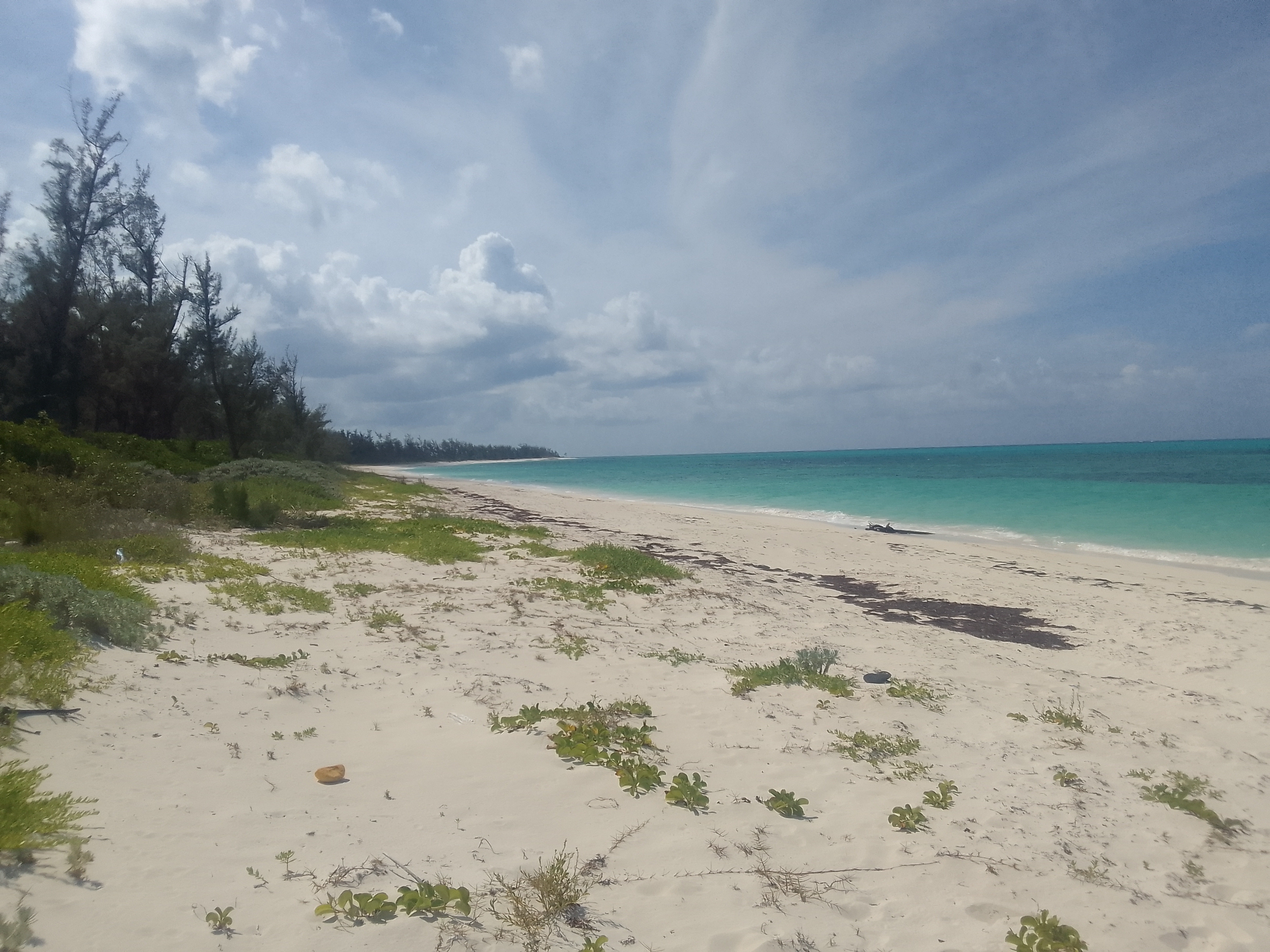 The beach trail was one of the best trails we’ve been on in the Bahamas. Instead of the sharp, pitted rocks and narrow clearances, this trail was wide and mostly sand. It cut across the island to the east side, on the Atlantic Ocean.