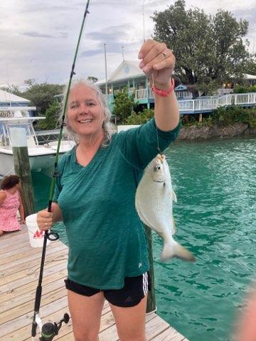 I also caught my very first Bahamian fish off the docks. I have been dropping lines in the water all over and finally, finally caught a fish. This was a catch and release situation.