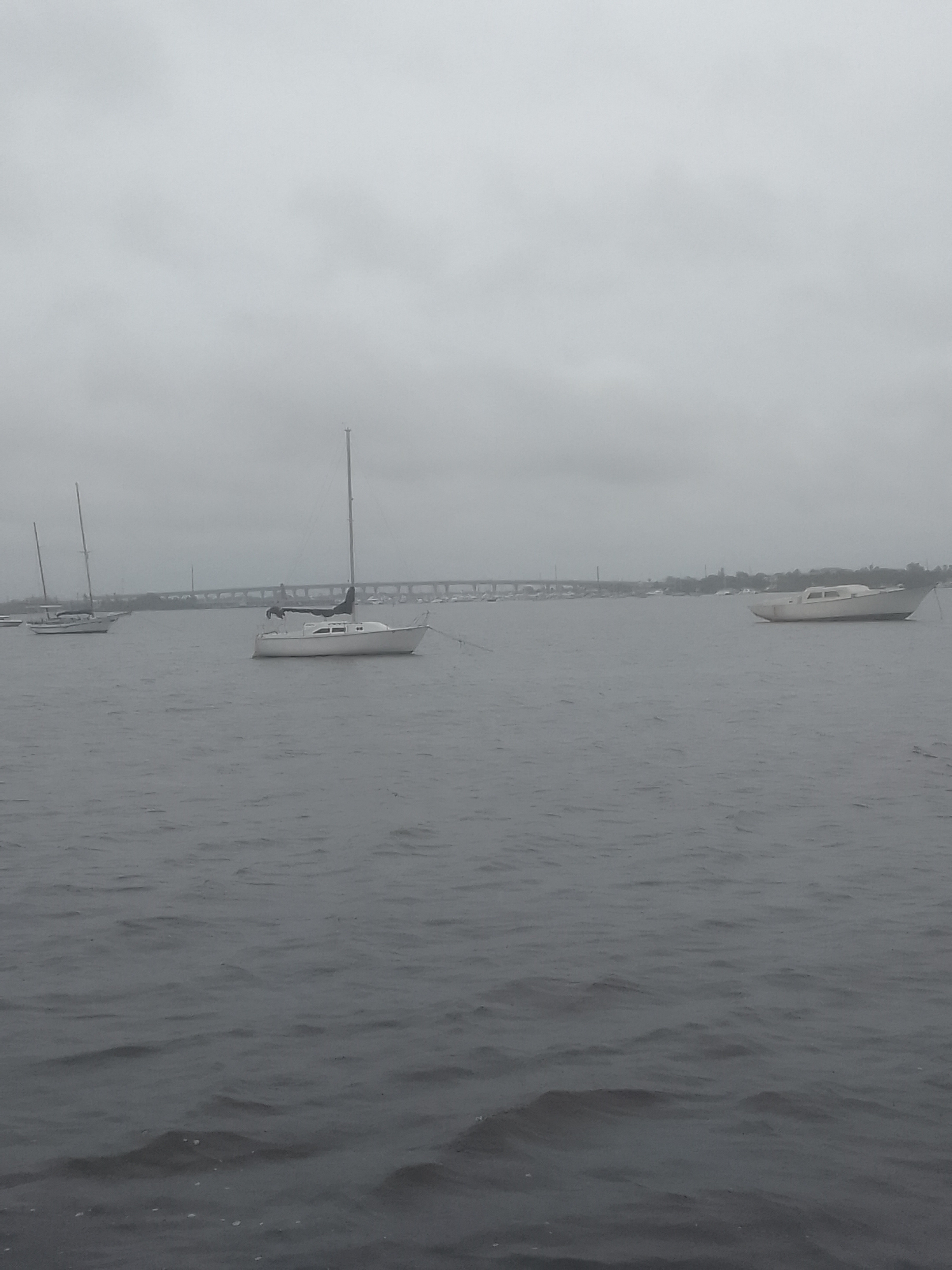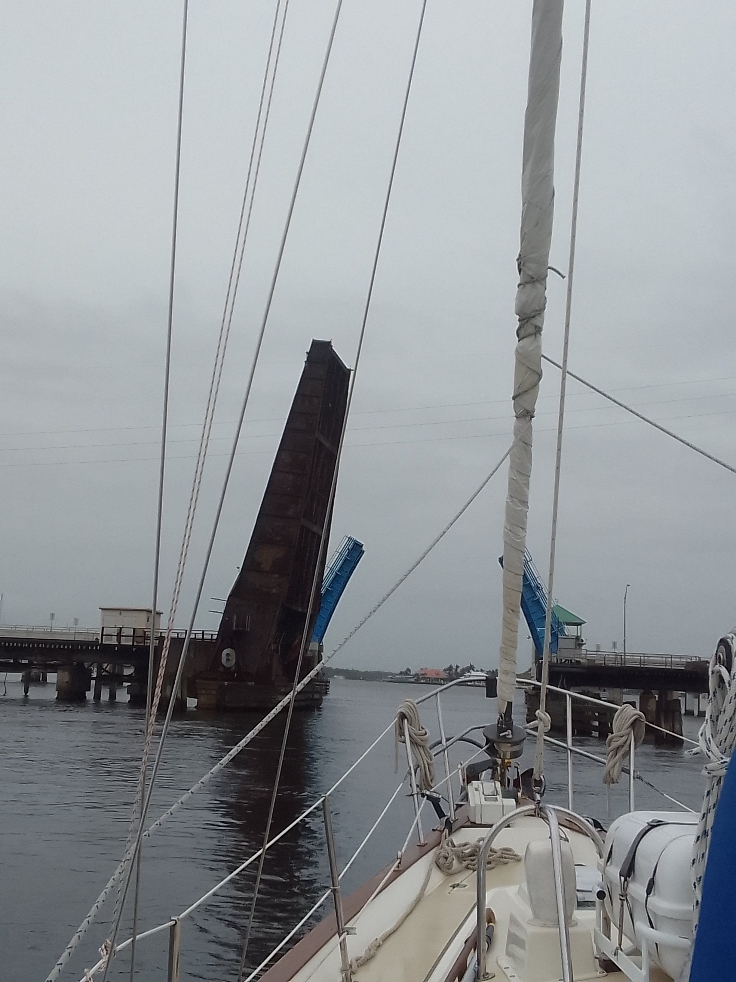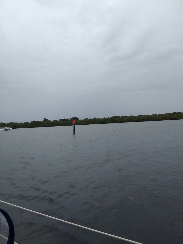 We are riding out the storm in an anchorage off of the St. Lucie River in Stuart, Florida. This anchorage is west of the ICW and we think it’s inland enough to keep us out of the worst of the winds. It also means that we had to leave the ICW for a few miles (there were four bridges on this part of the trip).
