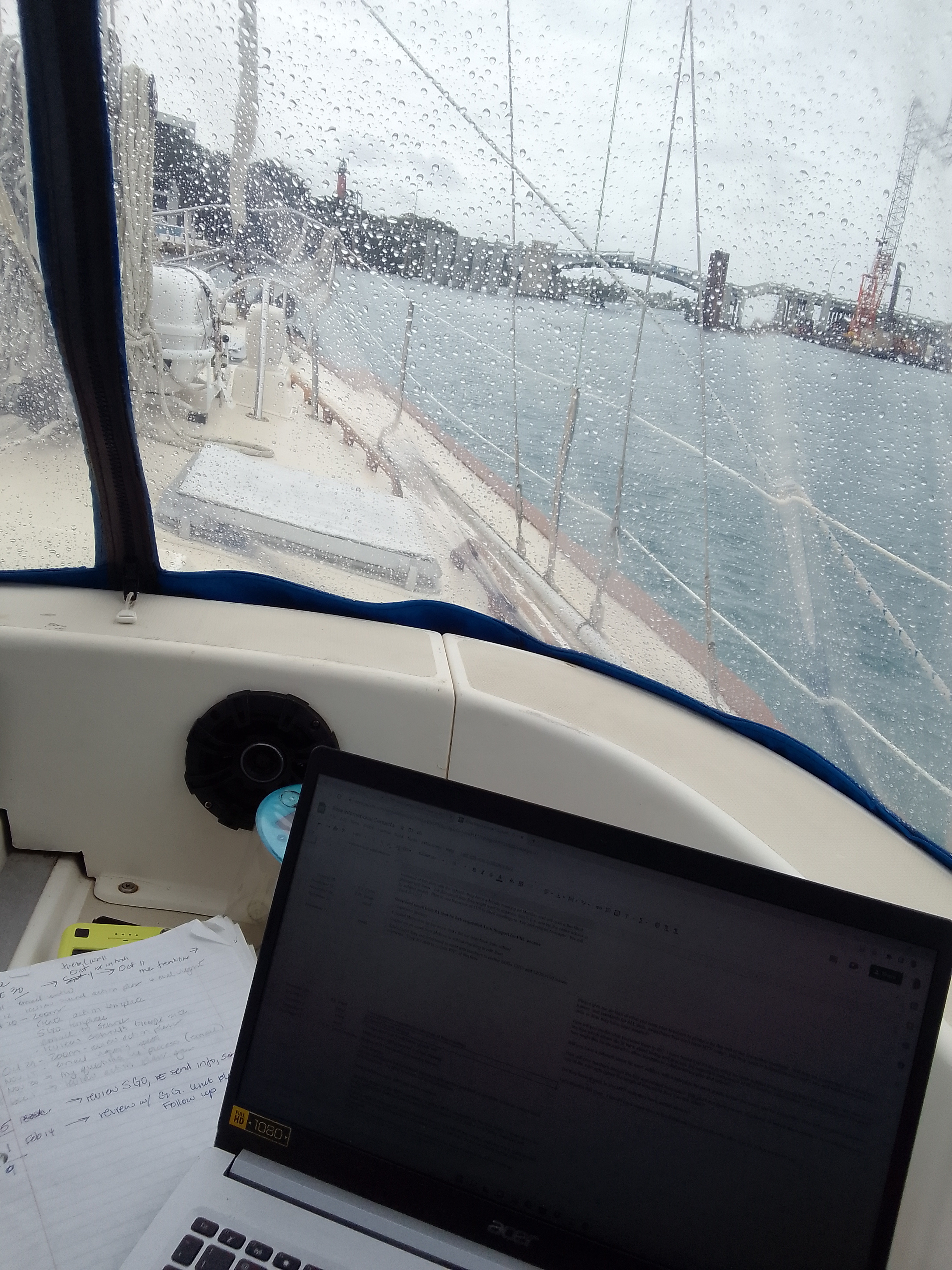 We considered grabbing a mooring ball at the marina that is very close to us instead of anchoring so I don’t have to worry about dragging an anchor. The marina told us their corporate office will not let them rent any mooring balls or dock space due to the storm. The anchorage does have good holding and John reminded me that we have dealt with strong winds when we were in Black Point with no trouble. The strongest winds are forecast to hit midmorning tomorrow, so I can sleep tonight.