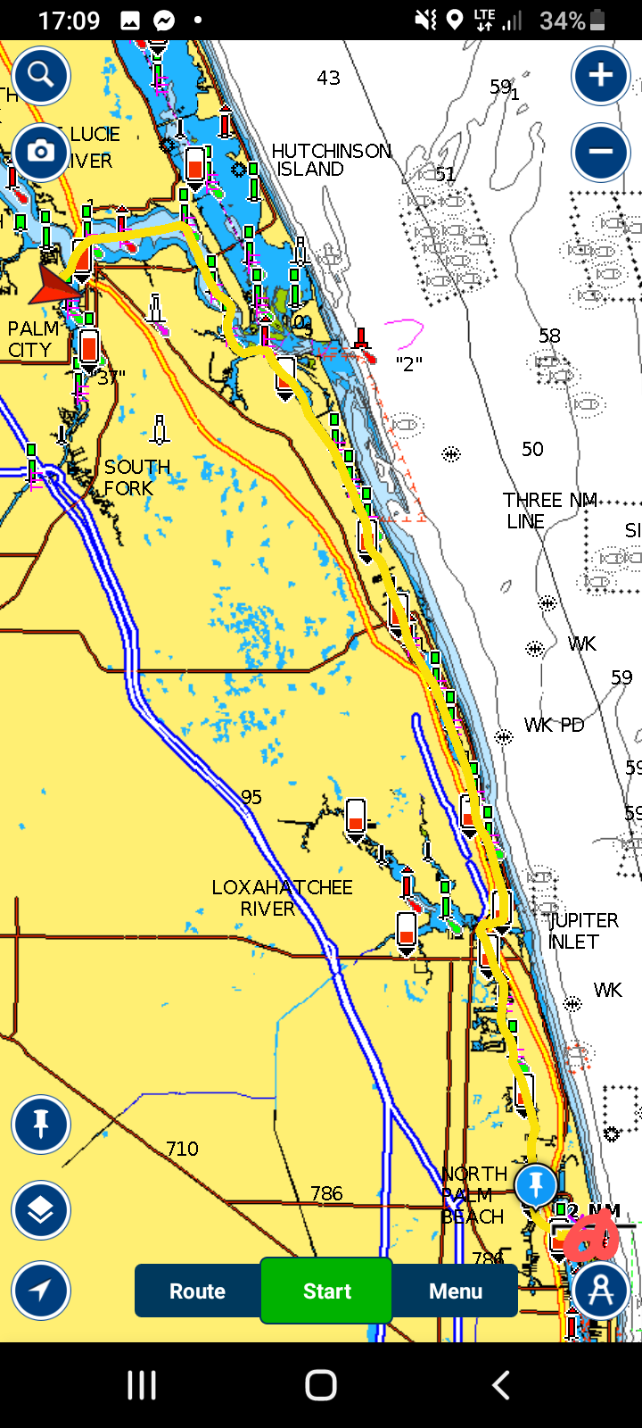North Palm Beach to Pendarvis Cove, Stuart, FL (anchored)