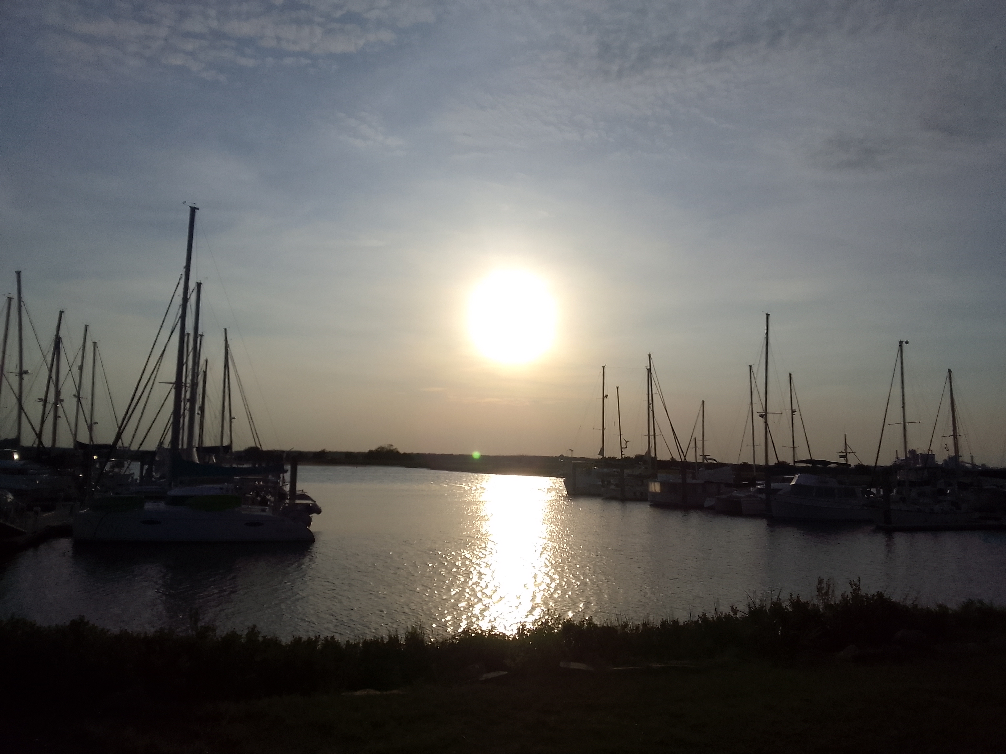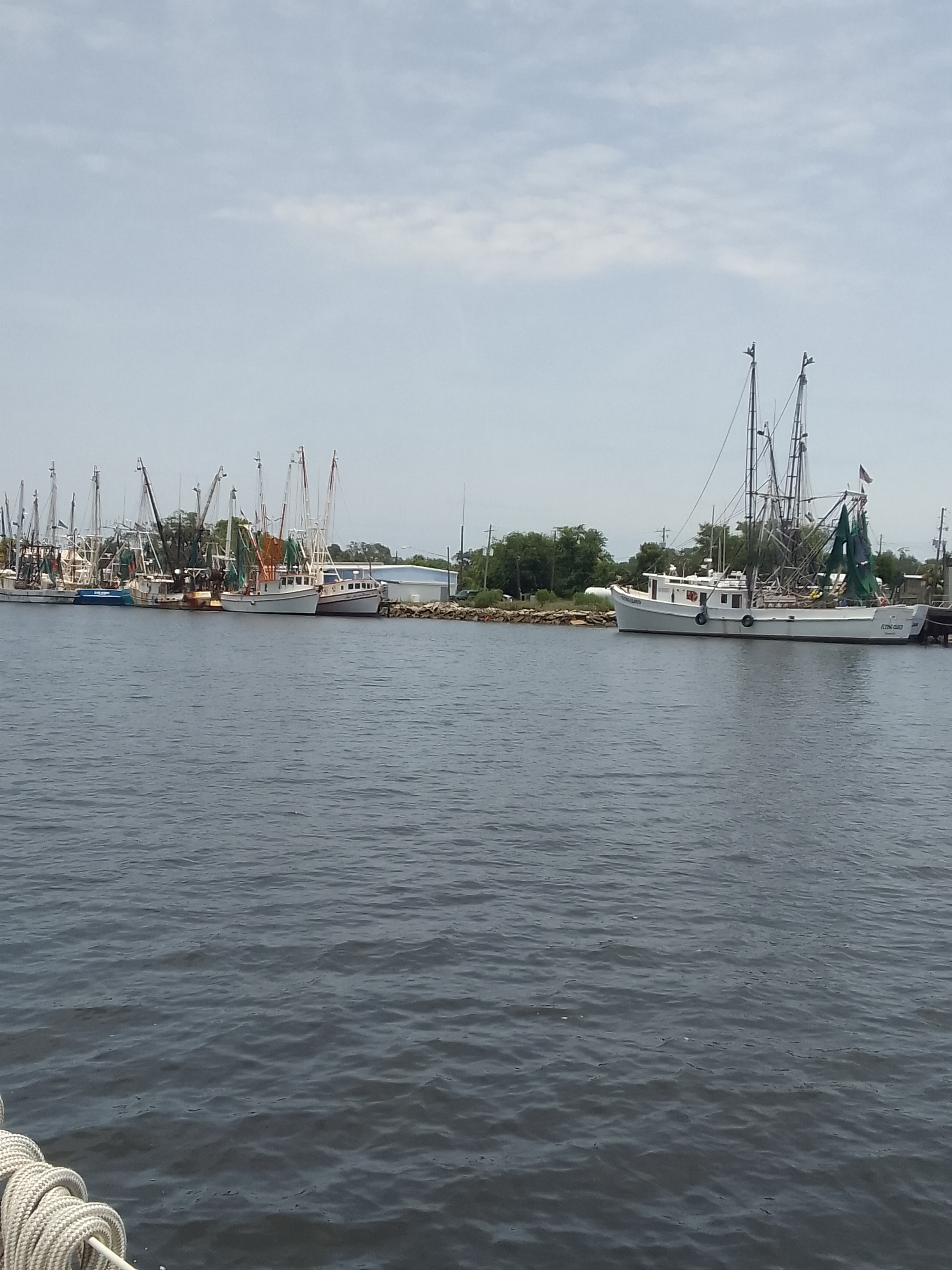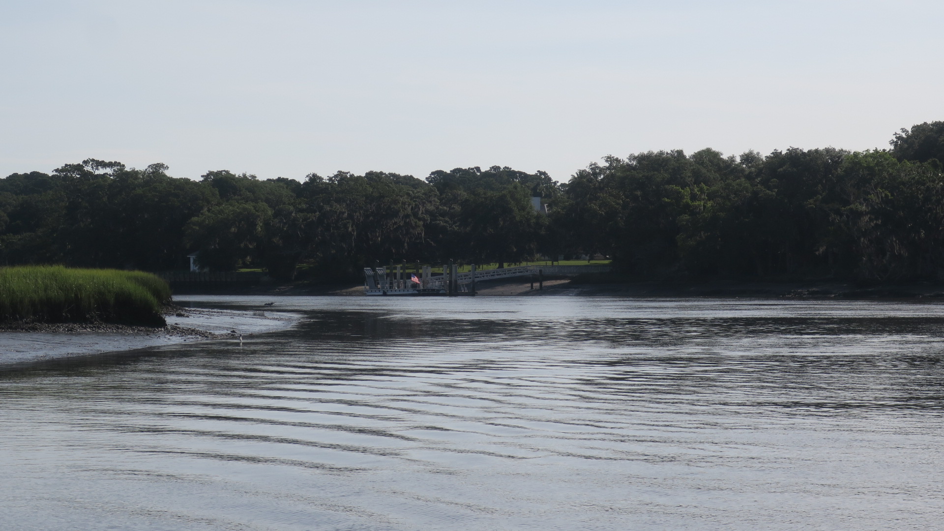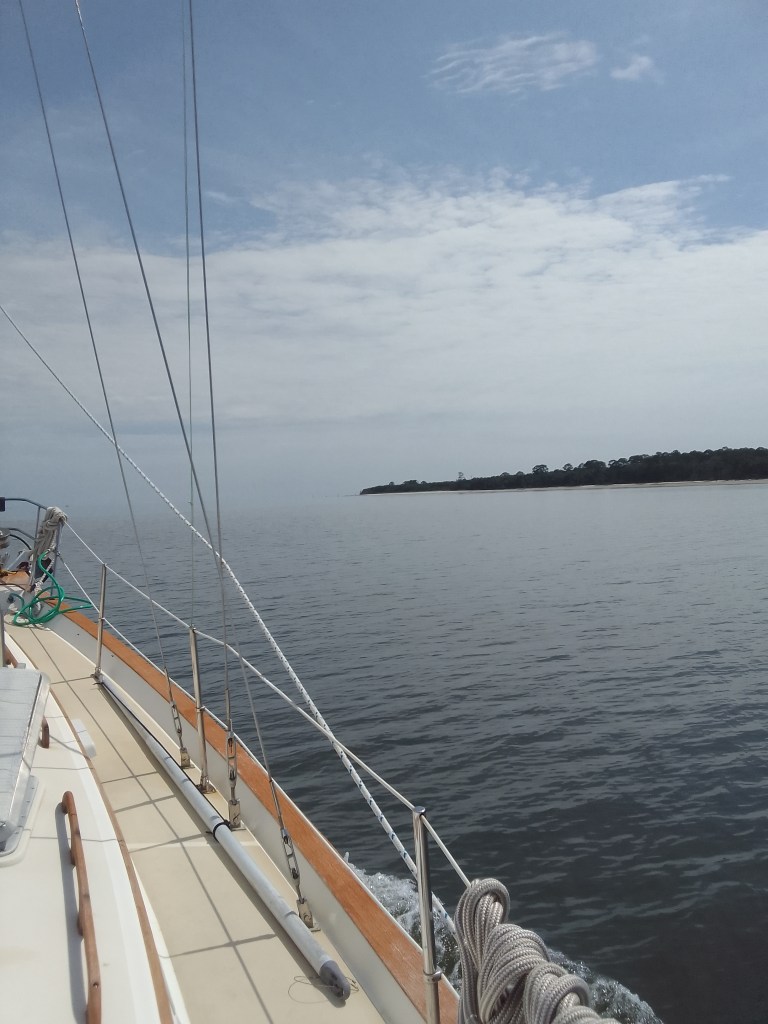 To get to Brunswick, Georgia, we have to cross St. Andrew Sound, which is where several rivers meet the ocean. All of this moving water, plus the large fetch (area where wind can blow over the water) can make sounds really sporty. This was not the case today – it was really, really eerily calm.