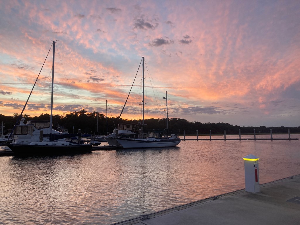 Our former marina does not have space for us so we’ll be staying in a marina in town. It’s within a short distance to a lot of Charleston’s stores and restaurants, so in some ways it’s actually a better place to stay for a week or so before we explore further north.