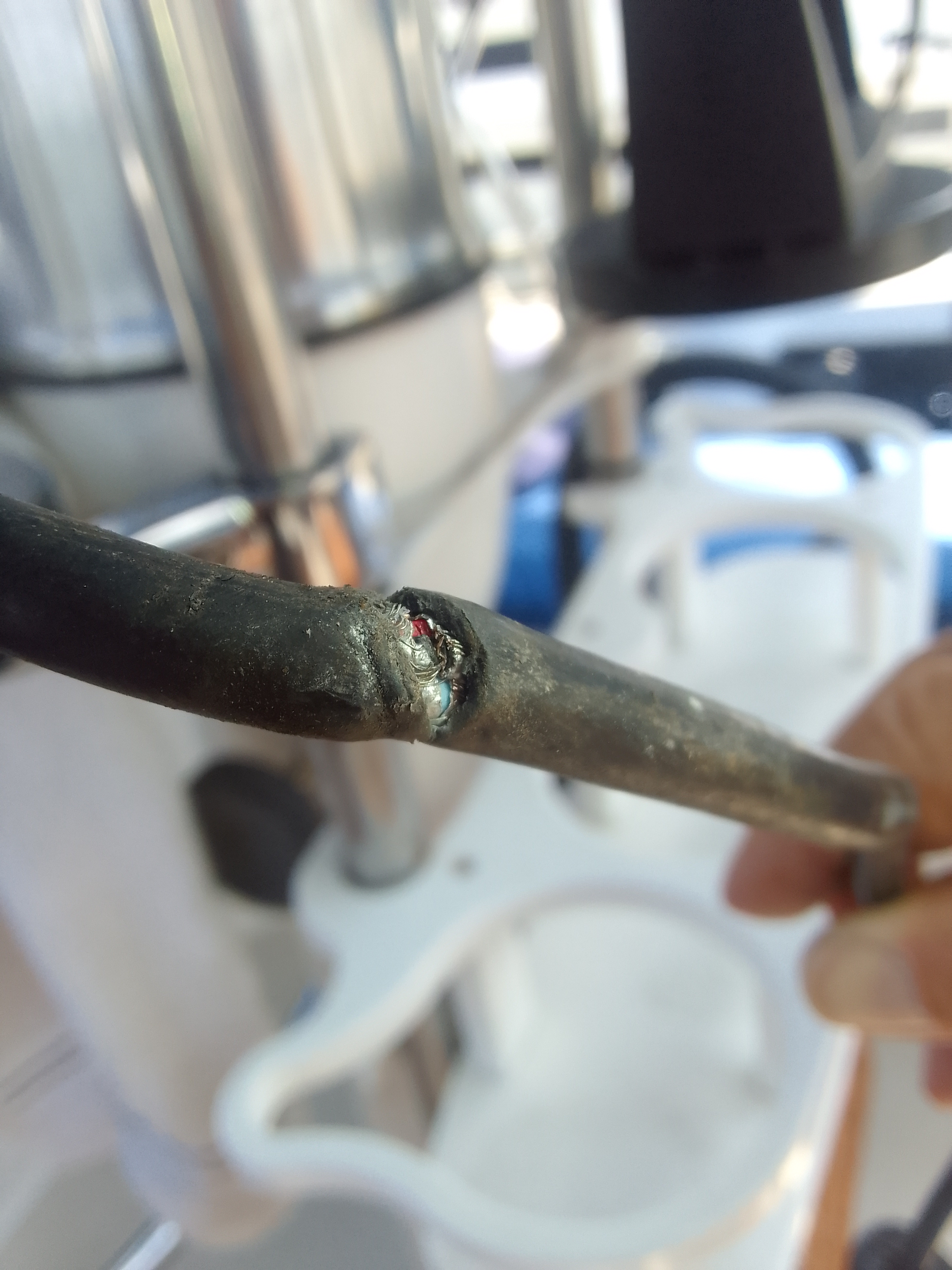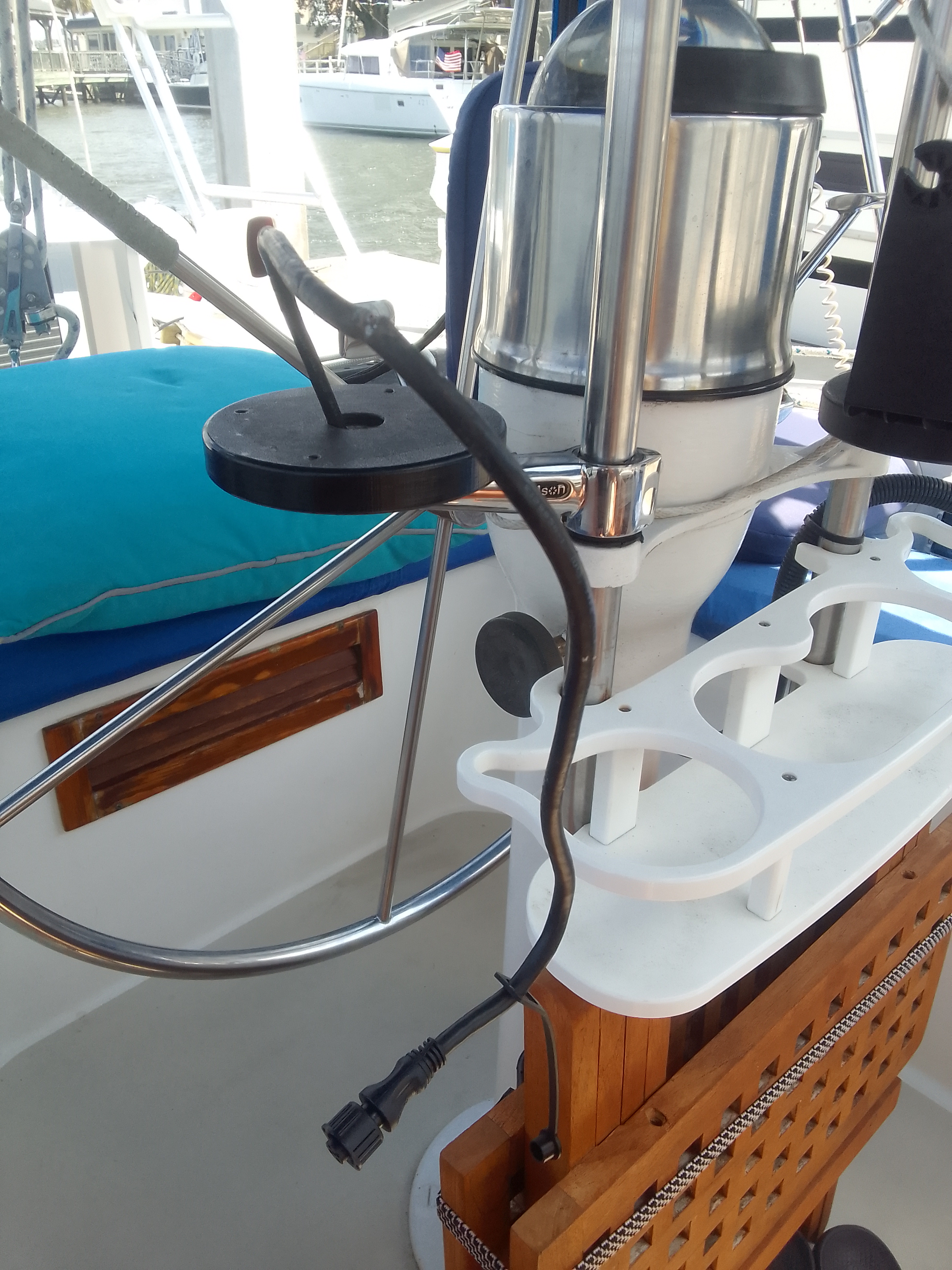 There were five wires inside the cable for the autopilot. It took a while to attach them all in the right order (we are working on a boat that is moving in the wind and waves with a limited selection of tools). The really bad news is that once everything was connected, the autopilot still does not work.