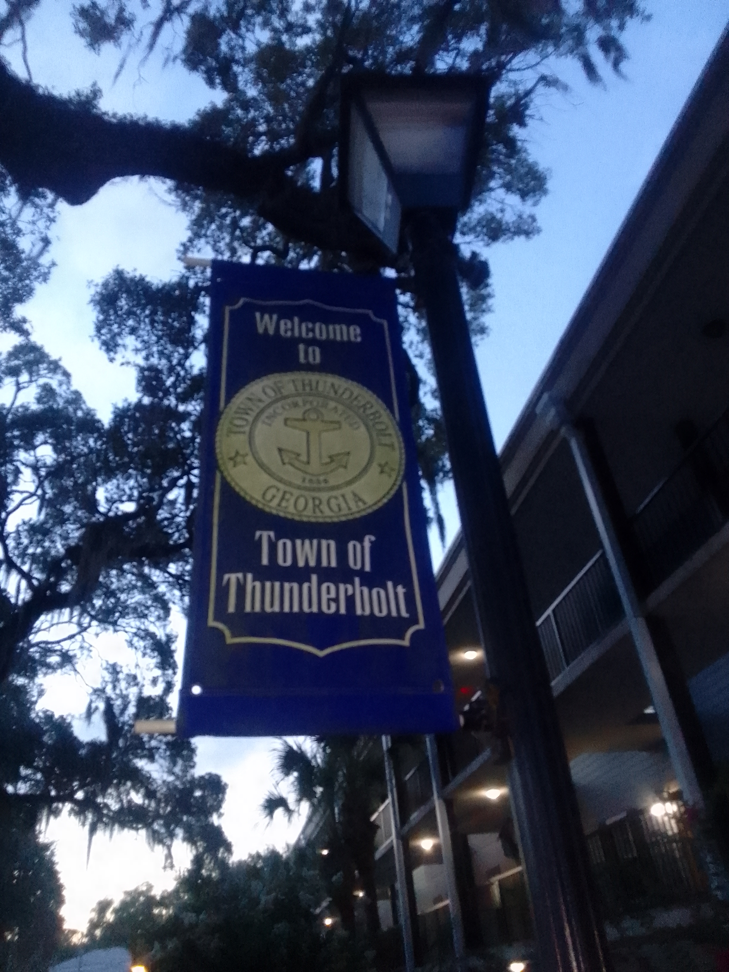 Once the sun went down and the temperature cooled off a bit, we strolled through the tiny town of Thunderbolt (near Savannah). The town embraces its history around the the yacht basin so much that even the town seal has an anchor on it.