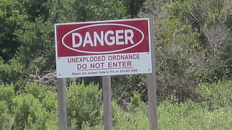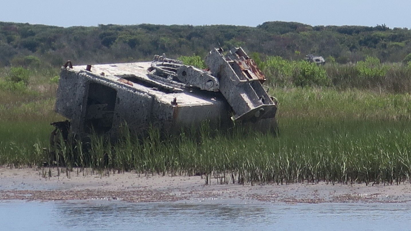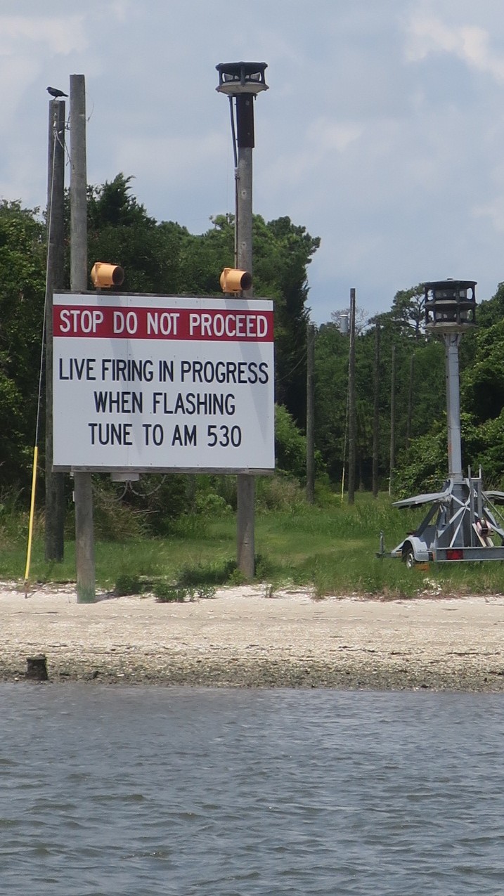 Camp Lejeune did not have live firing exercises today so we were able to keep on trucking up the ICW. The signs and the shot-up vehicles lining the route indicated what we were lucky to have missed.