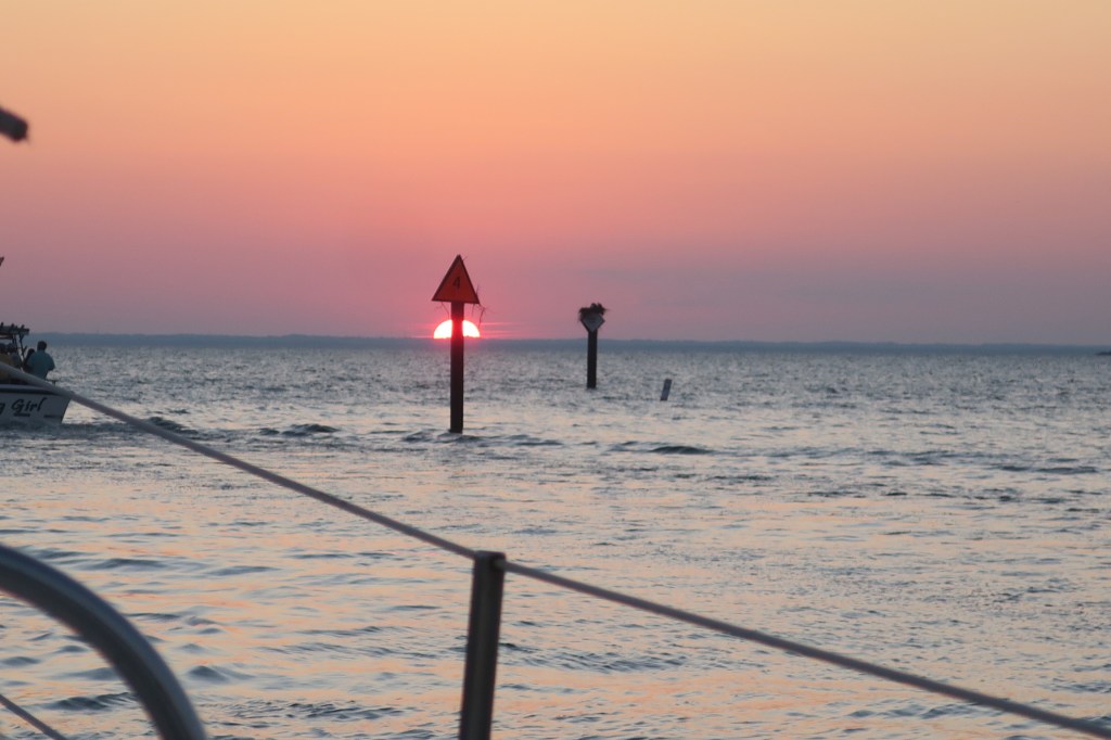 The Chesapeake was dead calm, really flat and glassy. This makes for an easy, but boring time, since we can’t sail but we don’t have to fight waves and winds without our autopilot.