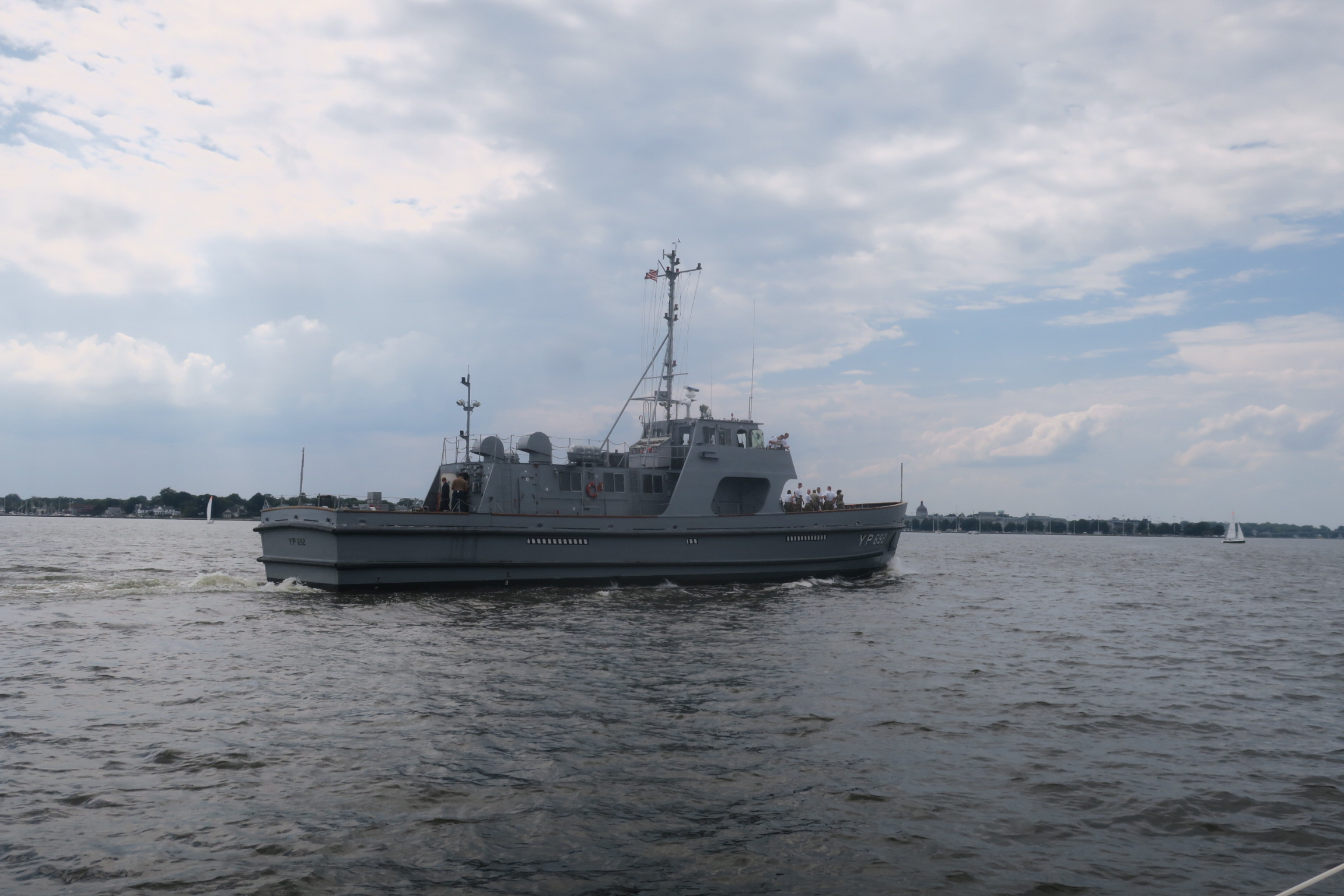 Boat traffic built up as we got closer to Annapolis, with all kinds of boats heading in and out of the harbor, including a boat from the Naval Academy. We had to weave around a lot of folks who were on small sunfish-type sailboats.