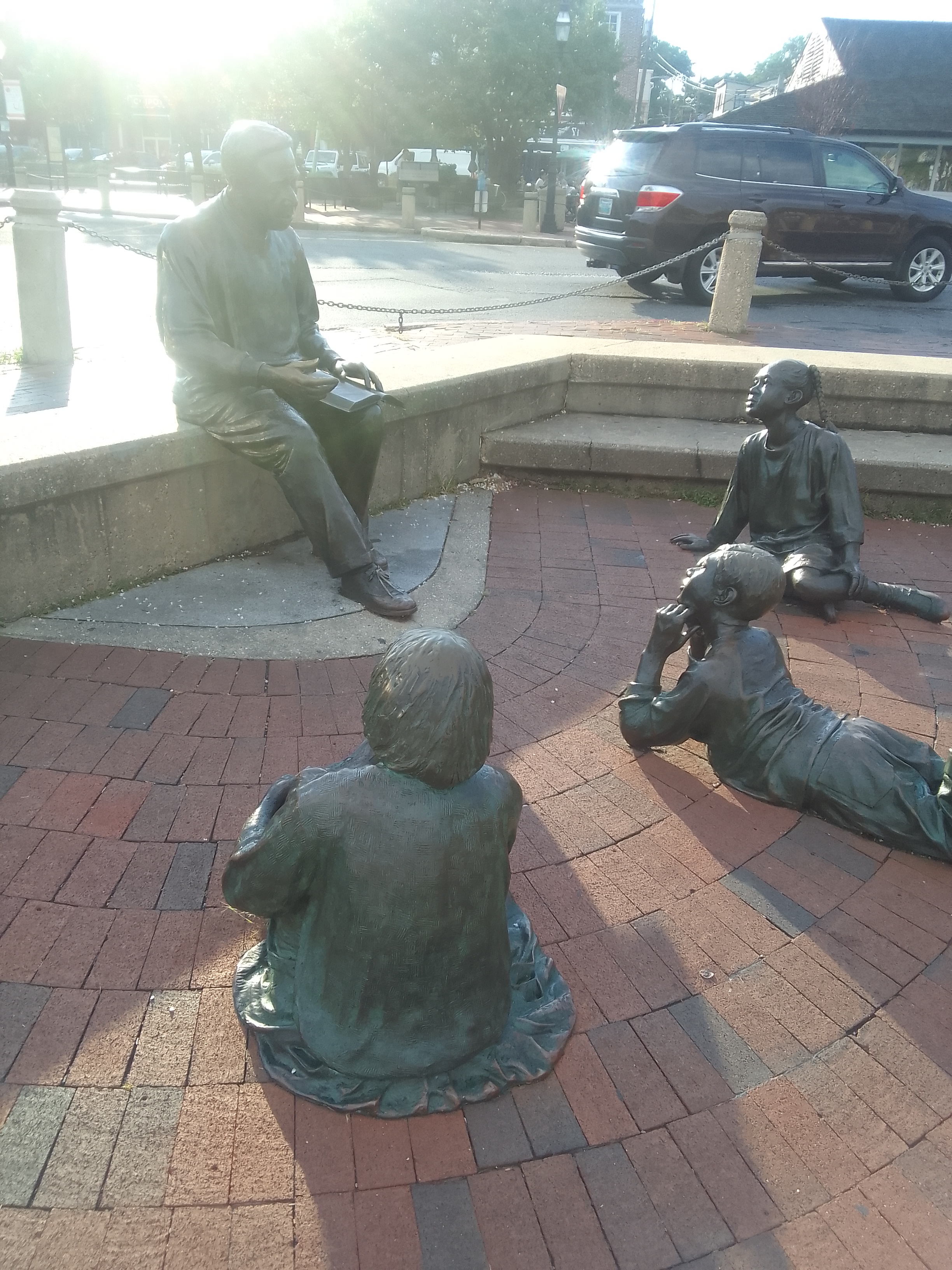 After dinner at the brewery we walked through town. There is a memorial to Kunta Kinte and his descendent, Alex Haley at the head of the City Dock. This is where Kunta Kinte landed when he was sold into slavery – the statue pays tribute to Alex Haley telling his ancestors’ stories to the next generations.