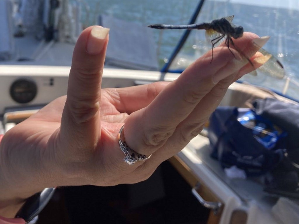 I think that when we slow down we also have more of an opportunity to interact with nature. I had a Snow White moment when this dragonfly landed on my outstretched hand and hung out for a couple of minutes.