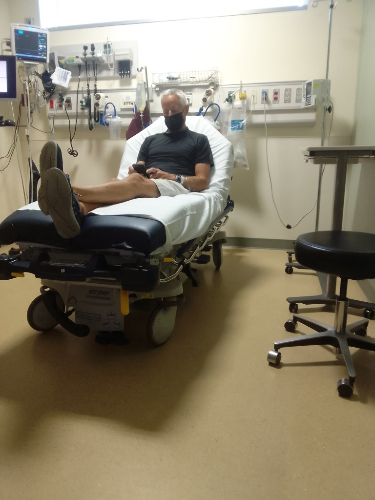 By the night of Friday, September 16, John knew he had to get medical treatment for what he knew was diverticulitis. We took an Uber to a local urgent care who, after a few tests, referred John to the emergency room to get a CAT scan. DIverticulitis can cause absesses which can quickly become septic.