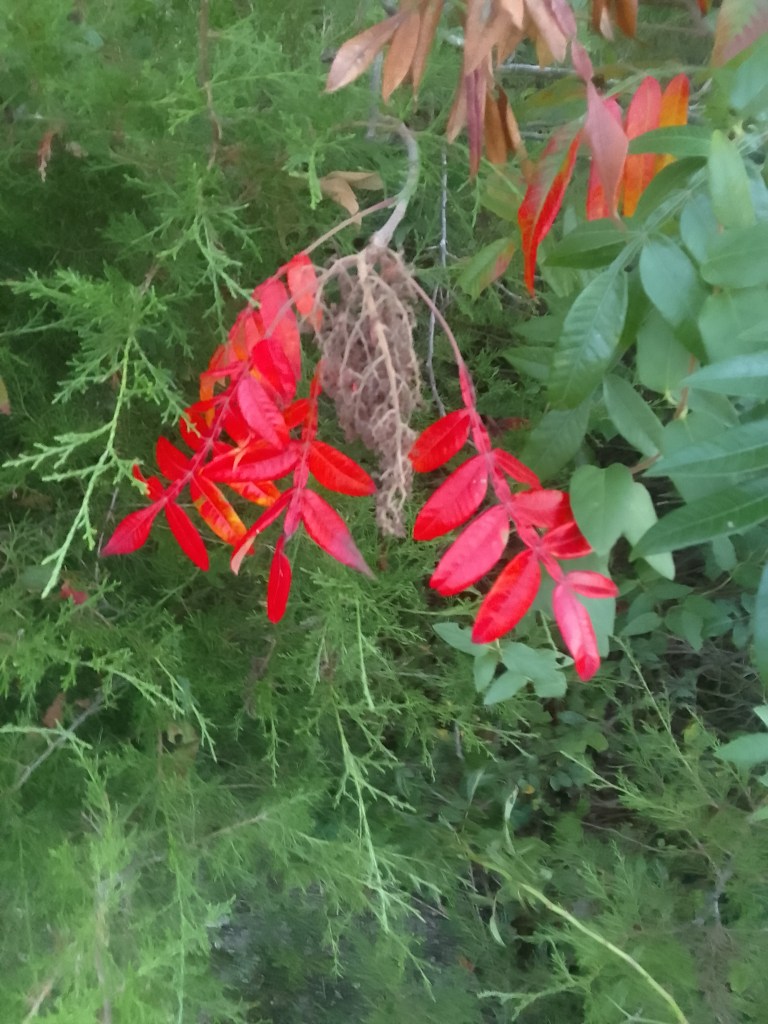 We’ve only been taking short walks because of John’s discomfort but we realize haven’t been this far north for a really long time. The signs of autumn as well are starting to creep in. I am not a fan.