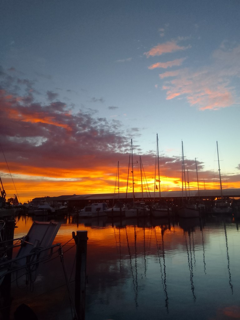 There have been some pretty sunrises, though, and we’ve enjoyed sleeping with the portlights open.