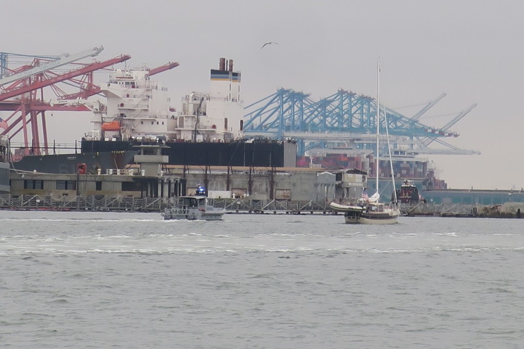 As we got closer to Portsmouth and Norfolk, there was a definite change in the surroundings. We also saw a naval police boat interact with a sailboat that was getting near some of the docked naval ships.