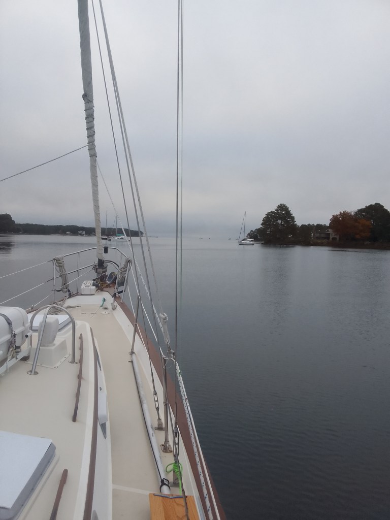 Red sky last night did not provide any delight for this sailor. It’s still gray. It’s not raining and it’s not windy, but it’s still just gray. We were lucky that we had sun when we were in St. Michaels on Friday because we’ve been in this monotone gray ever since.