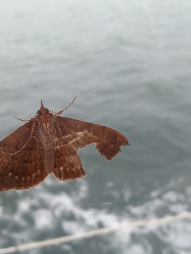 At least the water was pretty calm today so we could read. We also had a passenger for about an hour and a half. No doubt she is also tired of the gray, too.