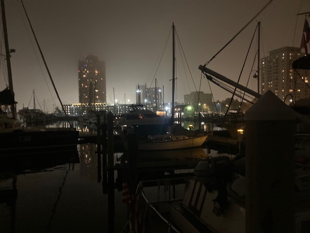 Night is very different here in this marina – we’ve got so much light from across the river from us in Norfolk.