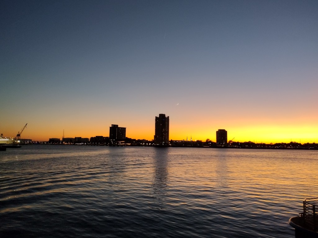 The western skyline of Portsmouth opens up from the Norfolk side of the river.