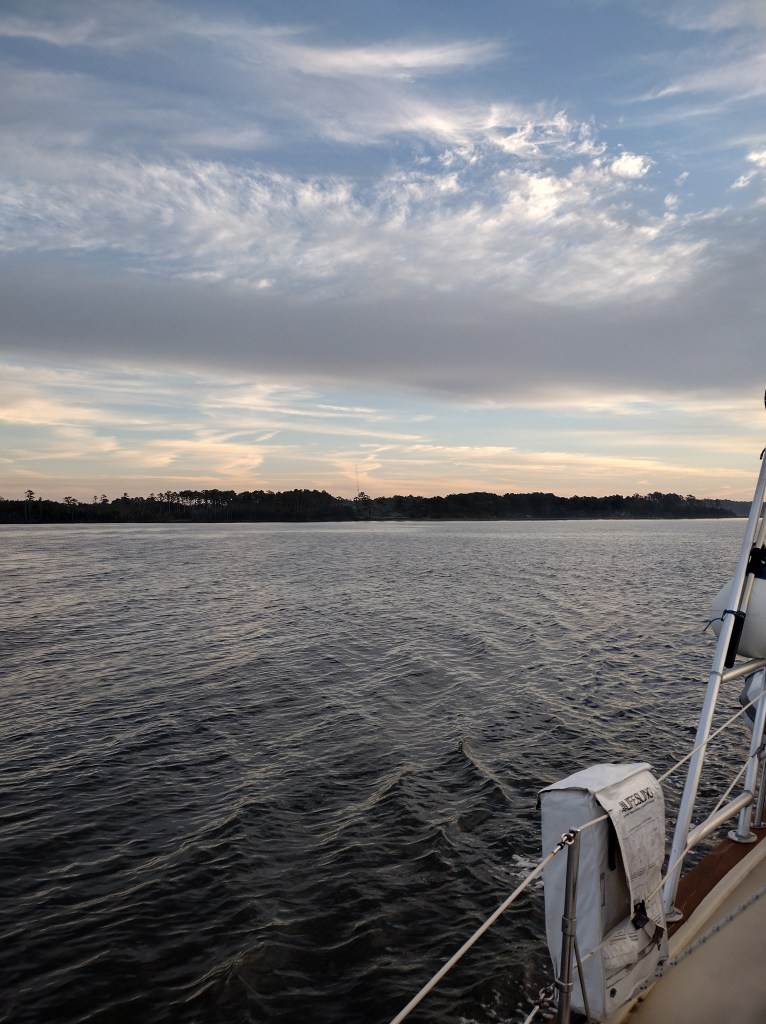 We hoped to go to a marina in Southport, NC tomorrow but there are no slips available so we hope to find a spot in Carolina Beach. Although there is a lot of water here, there’s not a lot of depth for us to pull over and anchor so we’ll have to make sure we have some backup plans for the next few days.