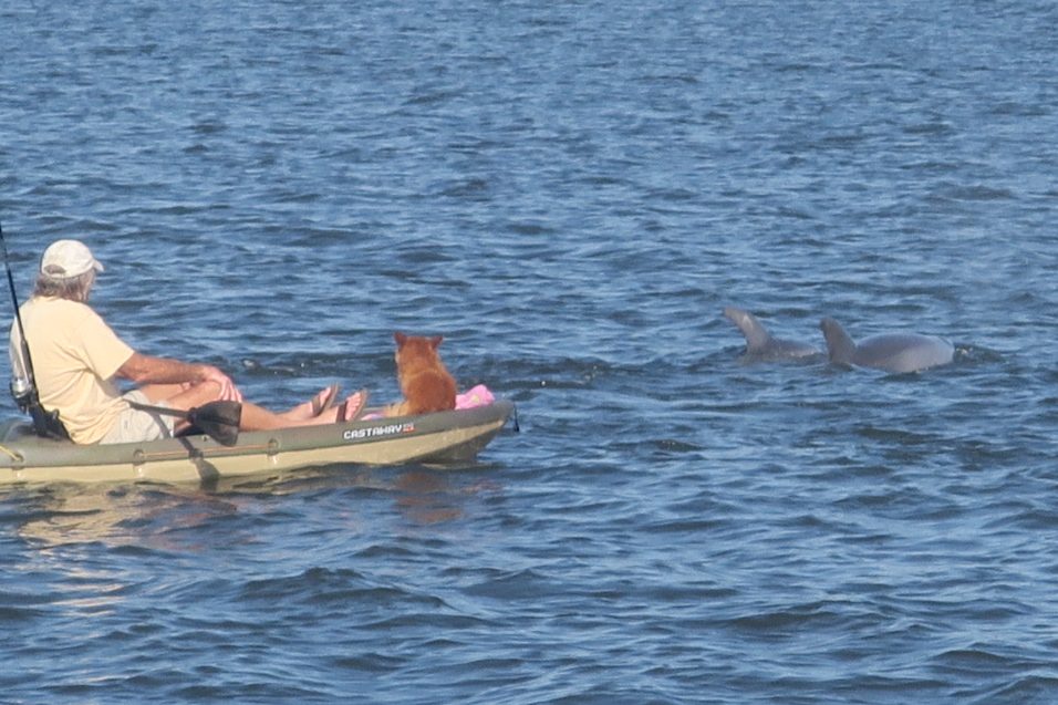 Just outside the canal, in the Mosquito Lagoon, we came upon a pod of dolphins feeding. Their splashing and circling made it really clear that they had surrounded a school of fish. I envy the man on the kayak who had a front row seat to all of this (just as an FYI, the dolphins got close to him, instead of him getting close to them).